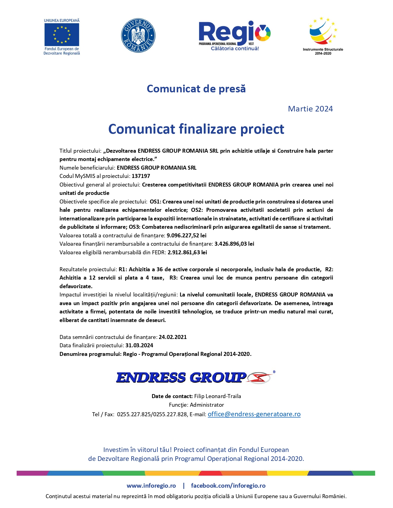 Numele beneficiarului: ENDRESS GROUP ROMANIA SRL