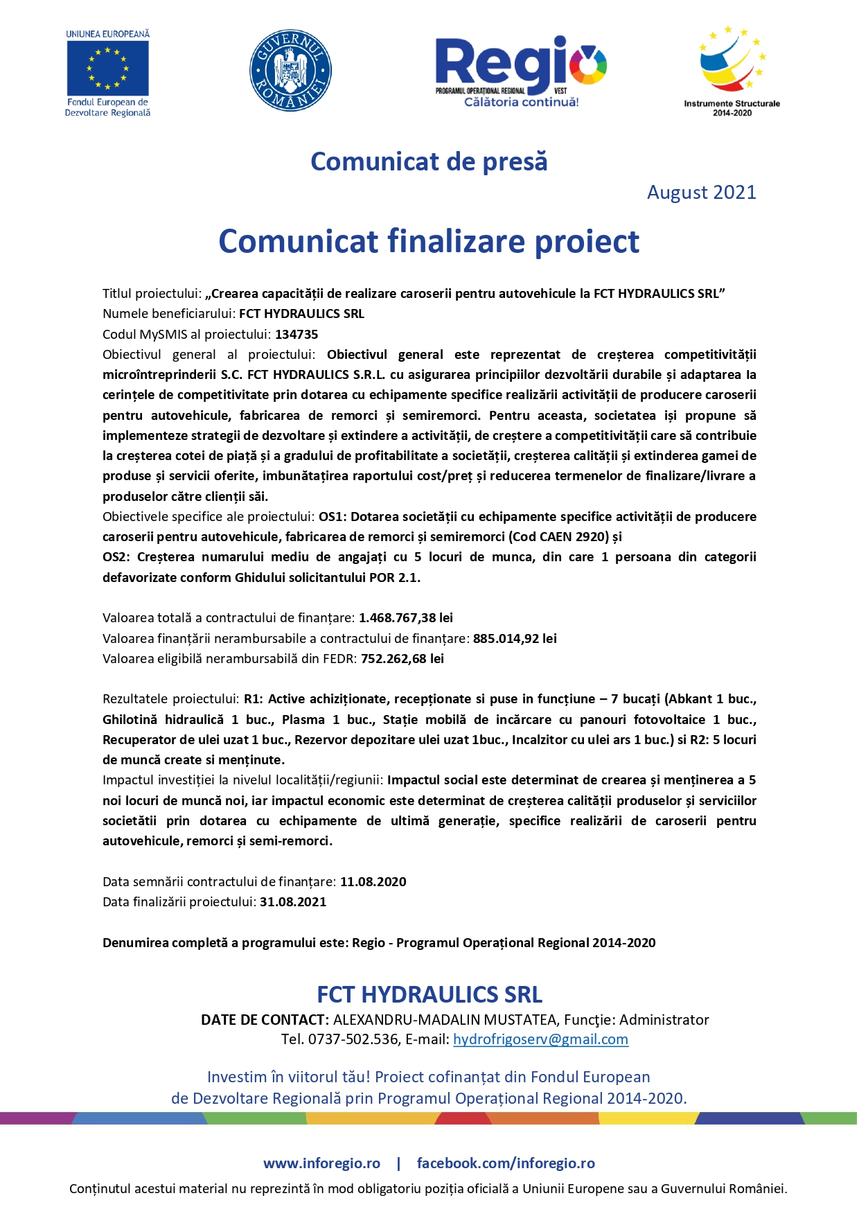 Comunicat finalizare proiect