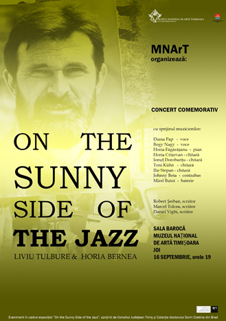 Expoziția de fotografii „On the Sunny Side of the Jazz” conține lucrări alb-negru realizate de Liviu Tulbure la festivalurile de jazz și lucrările color ale lui Horia Bernea. Liviu Tulbure şi-a pierdut viaţa la începutul acestui an, din cauza infecţiei cu virusul SARS-Cov2. Printre muzicienii care s-au regăsit în fotografiile expuse s-au numărat Paul Berne, Joey de Francesco, Giovani Hidalgo, Horia Crișovan, Galakamo Deseo Csaba, Wojtek Mazolewski, John Patitucci, Ravi Coltrane, Paolo Fresu, Toni Kühn, Gonzalo Rubalcaba, Jim Black, Gyárfás István, Maria Chiorean, Ralph Towner, Kurt Elling, Lee Konitz, Johnny Bota sau Jazzameia Horn.
