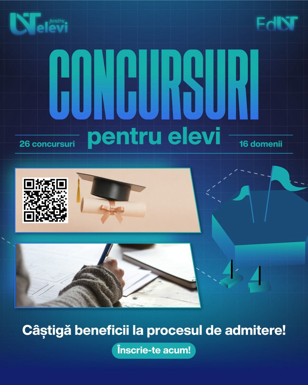 Termenele de înscriere diferă în funcție de concurs, majoritatea fiind programate în perioada martie-iunie 2026. Lista completă cu concursurile organizate de fiecare facultate, dar și detaliile legate de înscriere, pot fi consultate AICI.