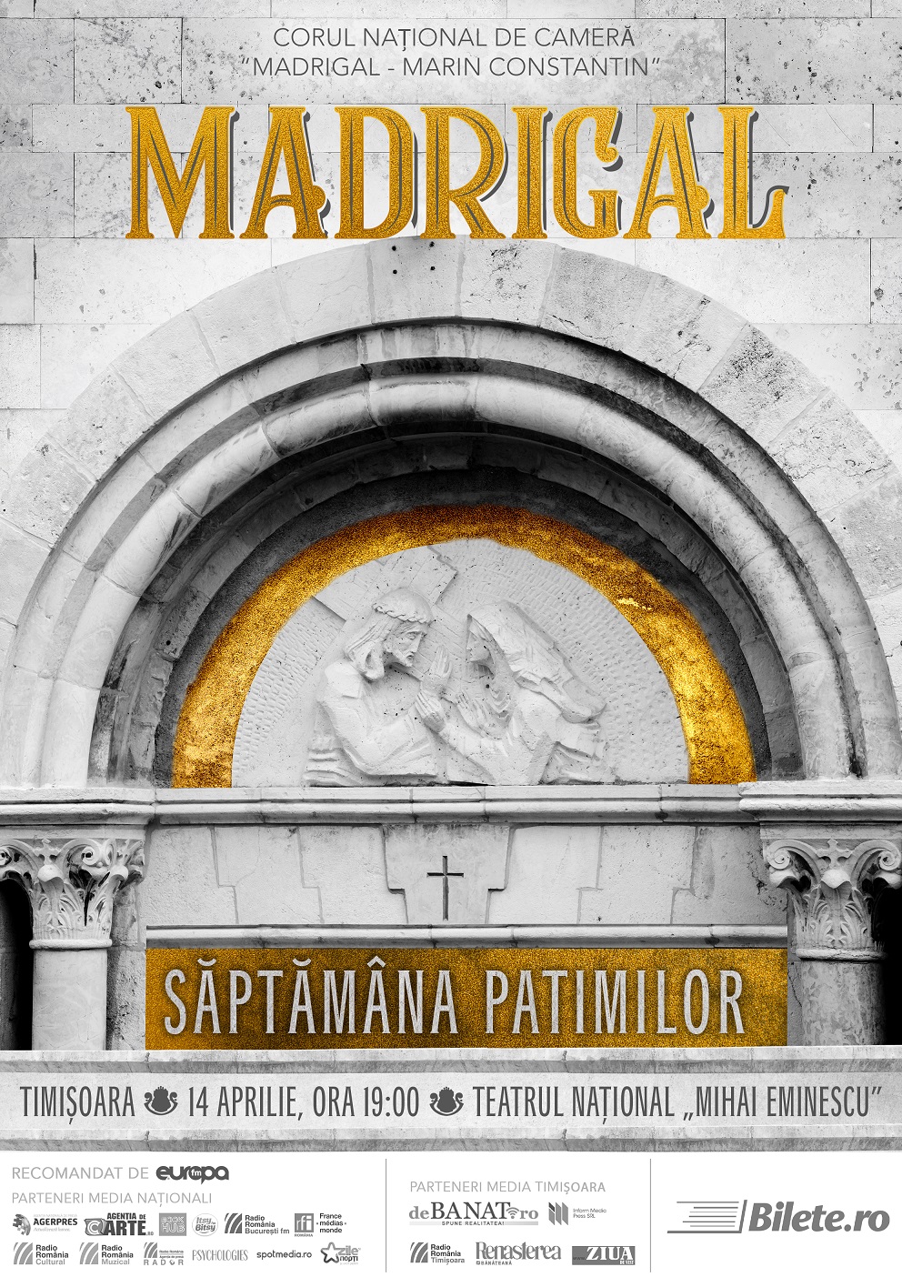 Joi, 14 aprilie, de la ora 19:00, Corul Național de Cameră „Madrigal – Marin Constantin”, dirijor Cezar Verlan, susține Spectacolul Extraordinar de Paște „Săptămâna Patimilor” la Teatrul Național „Mihai Eminescu”.