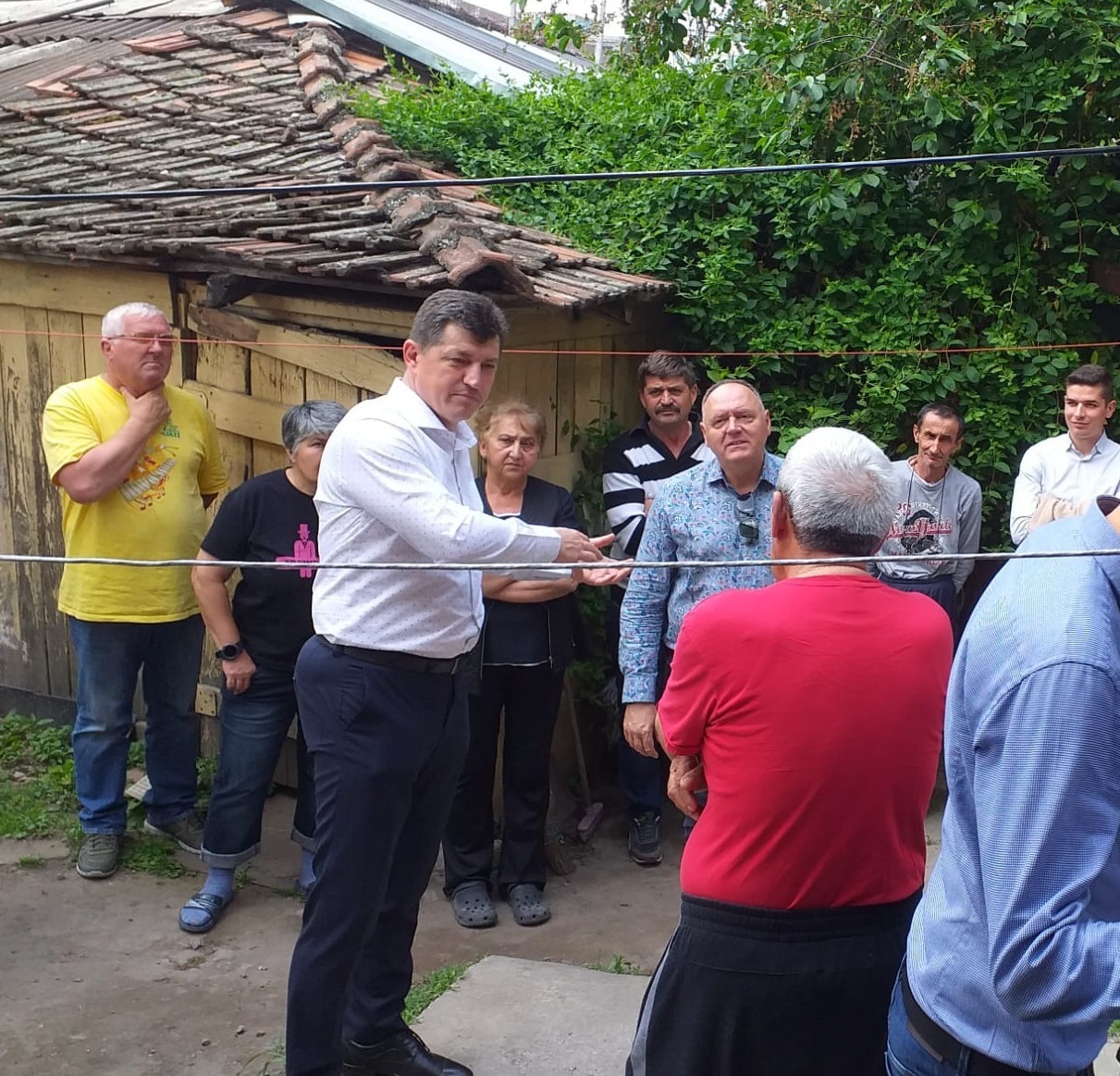 Viceprimarul Cosmin Tabără și consilierul local Simion Moșiu, ambii de la PNL, au mers, miercuri, să discute cu locatarii care plătesc chirie municipalității pe str. Ștefan cel Mare nr. 34, într-un imobil cu locuințe sociale.