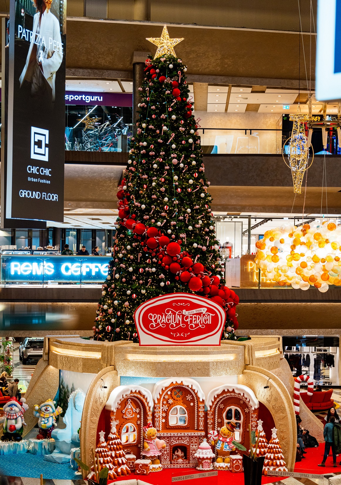 „În Atrium se află bradul de 15 metri înălțime, piesa centrală, care are la bază trei camere personalizate – Camera Cadourilor, Camera de Turtă Dulce și Camera Ținutului Înghețat, iar o instalație specială creează magia unei ninsori spectaculoase. În zona magazinului Lefties, bradul cu instalații neon este un punct de atracție pentru generația Z, pentru că este cadrul perfect pentru fotografii memorabile. Bradul retro este amplasat în exterior, în zona Tucano, și oferă vizitatorilor șansa de a păși în interiorul unui televizor uriaș, evocând o atmosferă nostalgică și plină de farmec”, mai completează Caterina.