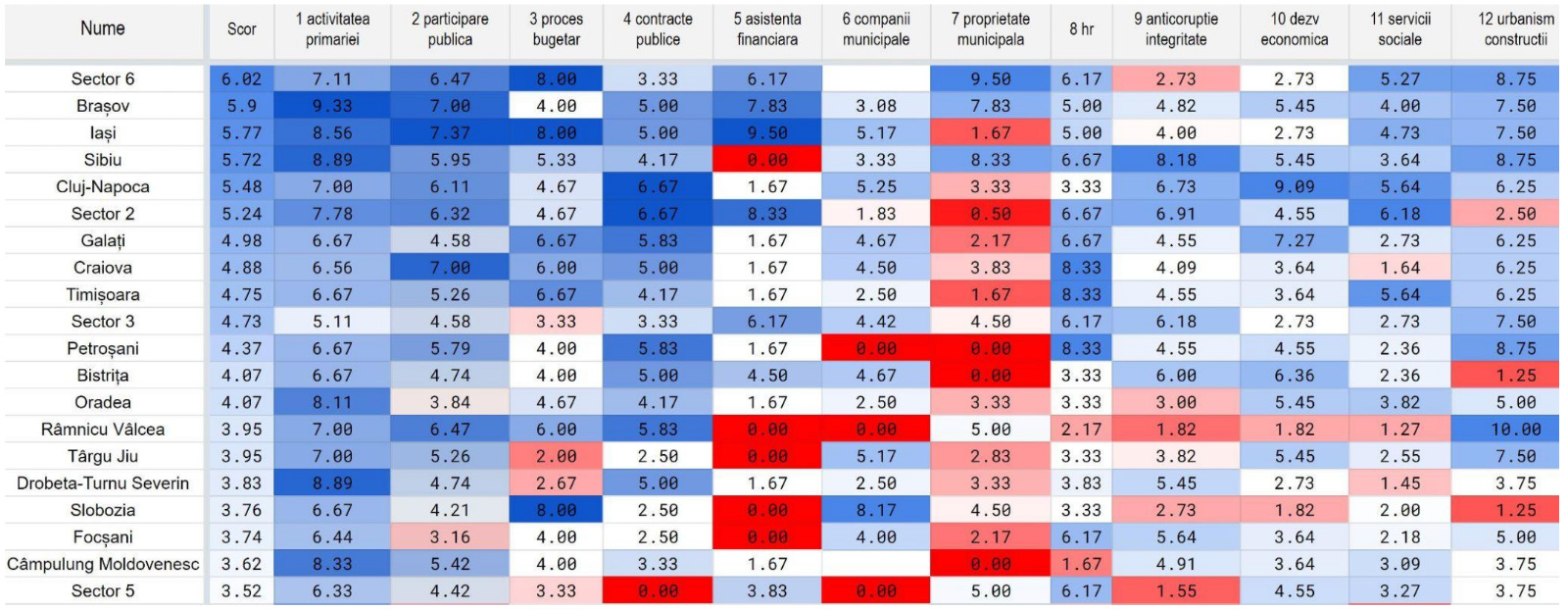 În fața Timișoarei, în clasamentul Indicelor de Transparență Locală 2023, sunt opt primării: Sector 6 (6,02), Brașov (5,90), Iași (5,77), Sibiu (5,72), Cluj-Napoca (5,48), Sector 2 (5,24), Galați (4,98) și Craiova (4,88).