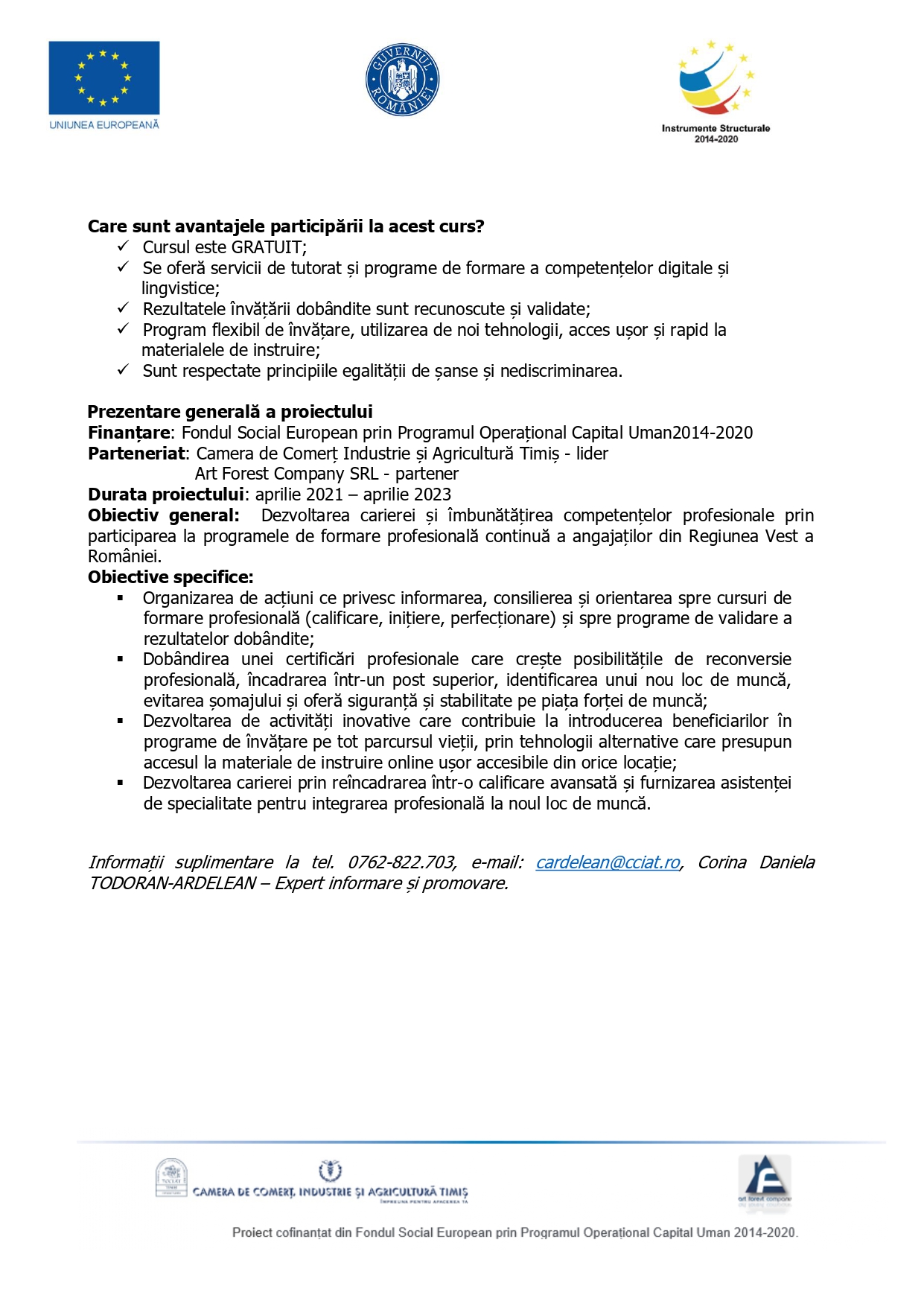 Informații suplimentare la tel. 0762-822.703, e-mail: cardelean@cciat.ro, Corina Daniela TODO-RAN-ARDELEAN – Expert informare și promovare.