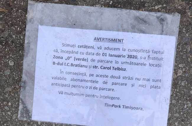 Niciunde în lume nu poți să parchezi aproape gratuit de dimineața până seara, într-o zonă centrală. O spune primarul Nicolae Robu, care a propus, împreună cu Direcția de Drumuri din primărie, să fie scumpită taxa de parcare pe Bd. I.C. Brătianu și str. Carol Telbisz. Cu votul consilierilor locali, se suprataxează parcare pe cele două artere, care au intrat în zona verde a Timpark, începând din luna ianuarie.