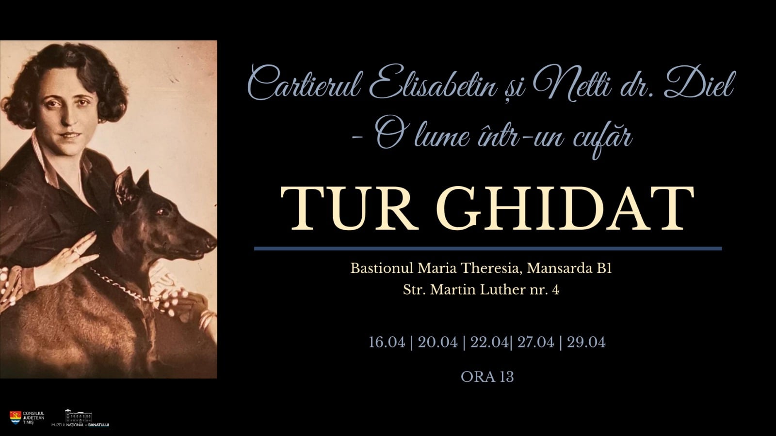 Până la finalul lunii aprilie, când va fi dezinstalată expoziția „Patrimoniul sub reflectoare Timișoara – Cartierul Elisabetin și Netti dr. Diel – O lume într-un cufăr” de la Bastionul Maria Theresia, cei de la Muzeul Național al Banatului (MNaB) vor oferi, gratuit, tururi ghidate, împreună cu un curator al muzeului. Tururile vor avea 40 de minute și vor fi o escapadă în timp, în care veți afla poveștile care stau în spatele obiectelor expuse.
