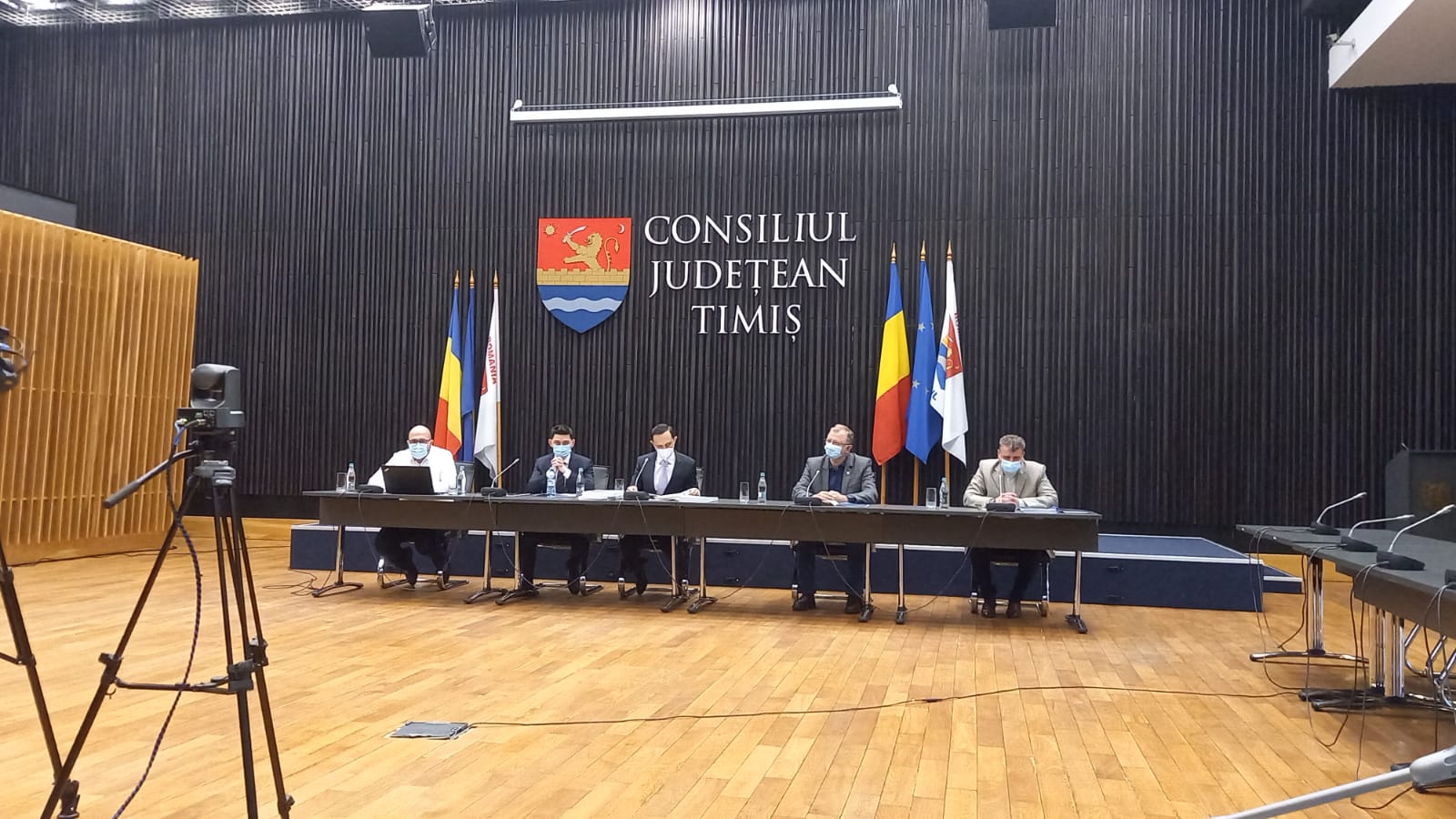La întâlnirea de la Consiliul Județean Timiș au participat președintele CJ Alin Nica și echipa de implementare a proiectului, formată din Alexandru Avram – manager de proiect, Adrian Lupuț – asistent manager și responsabilii de strategii, Dan Mircea și Ion Vițălaru.