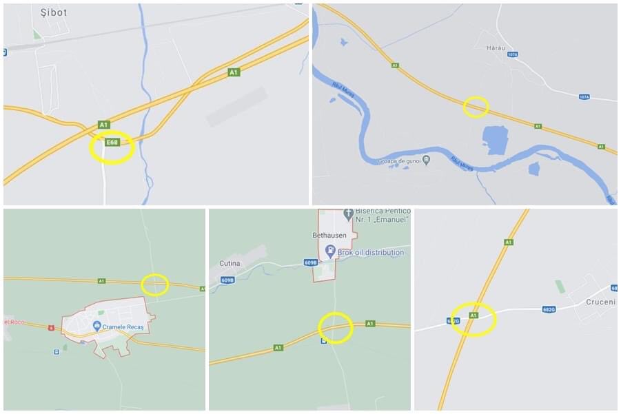 - Nod rutier: A1 (km 528+509) – DJ 682G (Cruceni)