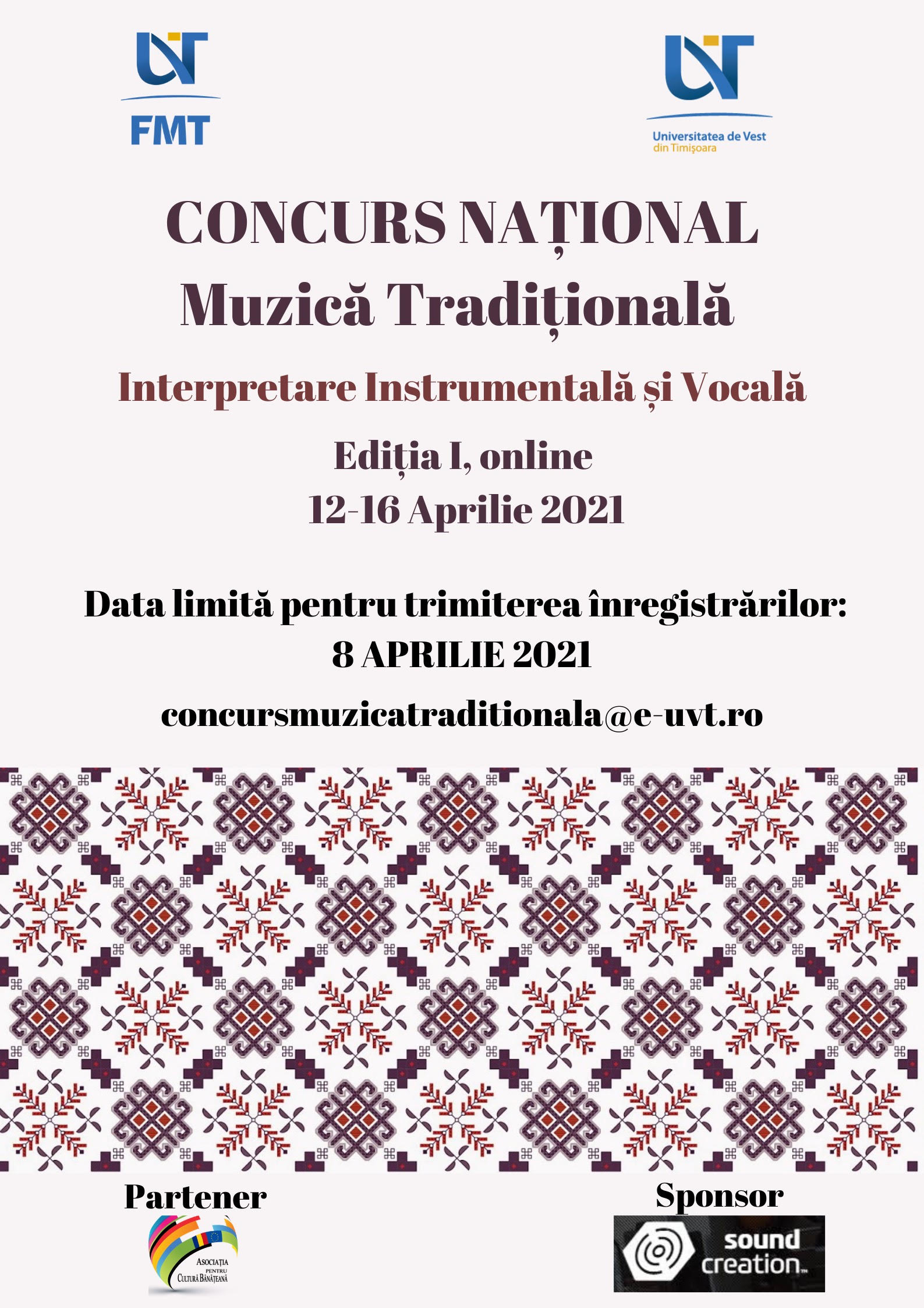 Primul dintre ele este Concursul Național Muzică Tradițională, interpretare instrumentală și vocală, dedicat elevilor de licee vocaționale din clasele XI-a și XII-a, care se va desfășura în perioada 12-16 aprilie, iar înscrierile înregistrărilor se fac până în 8 aprilie. Cel de-al doilea este Concursul național de flaut „inSuflu”, care se adresează elevilor de liceu, și care este structurat în două categorii: categoria A (clasele XI-XII) și categoria B (clasele IX-X). Pentru concursul de flaut, tinerii concurenții vor trimite o înregistrare a repertoriului impus pentru fiecare categorie, prin transfer, la adresa concursinsuflu@e-uvt.ro, până în de 5 martie.