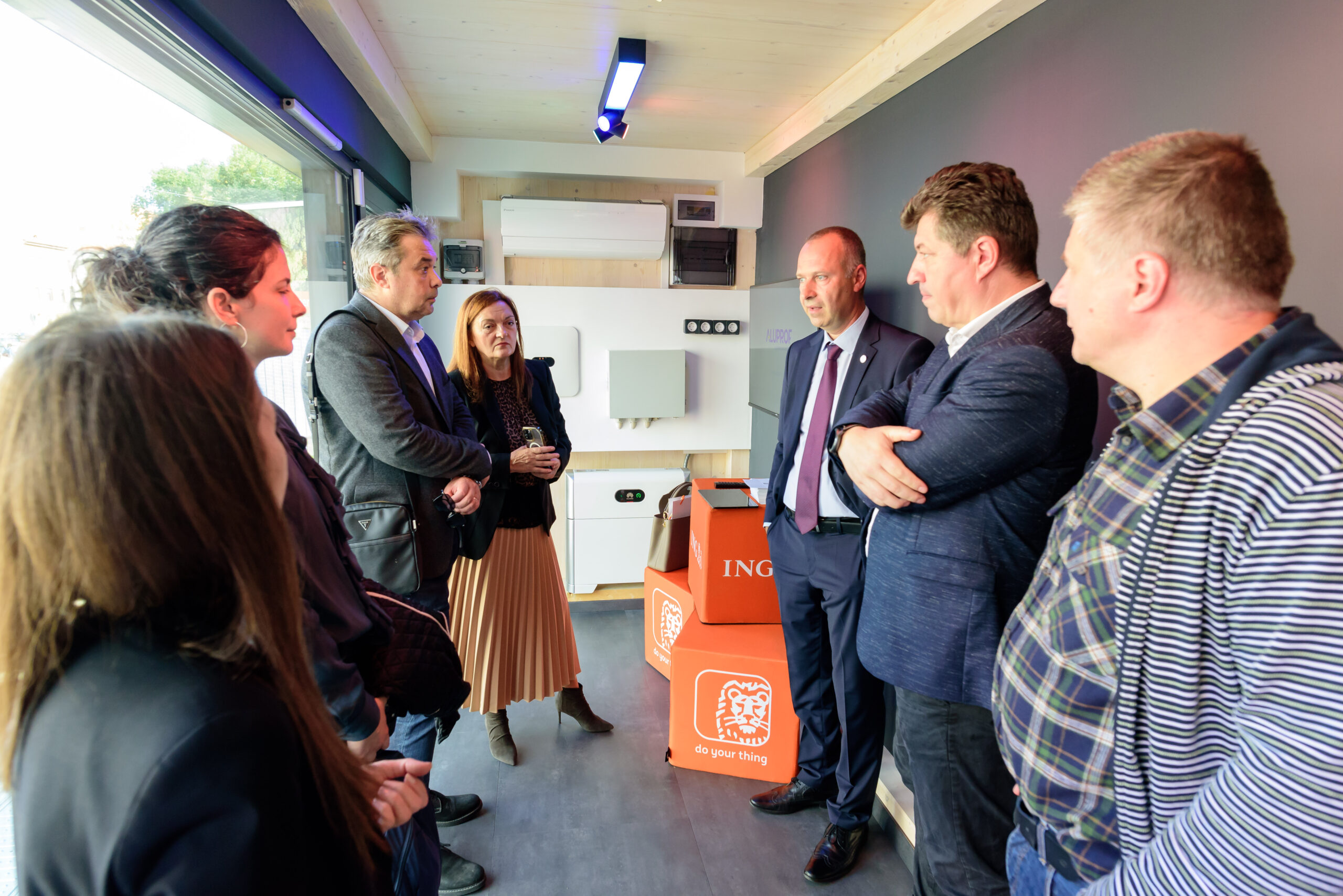 „Casa este realizată la această dimensiune pentru a o putea urca pe un trailer și astfel, să putem vizita mai multe orașe din țară, ceea ce am și făcut. Prima componentă a caravanei permite oamenilor să vadă efectiv, în mod real, ce soluții integrate trebuie folosite atunci când renovează o clădire sau când doresc să construiască una nouă.