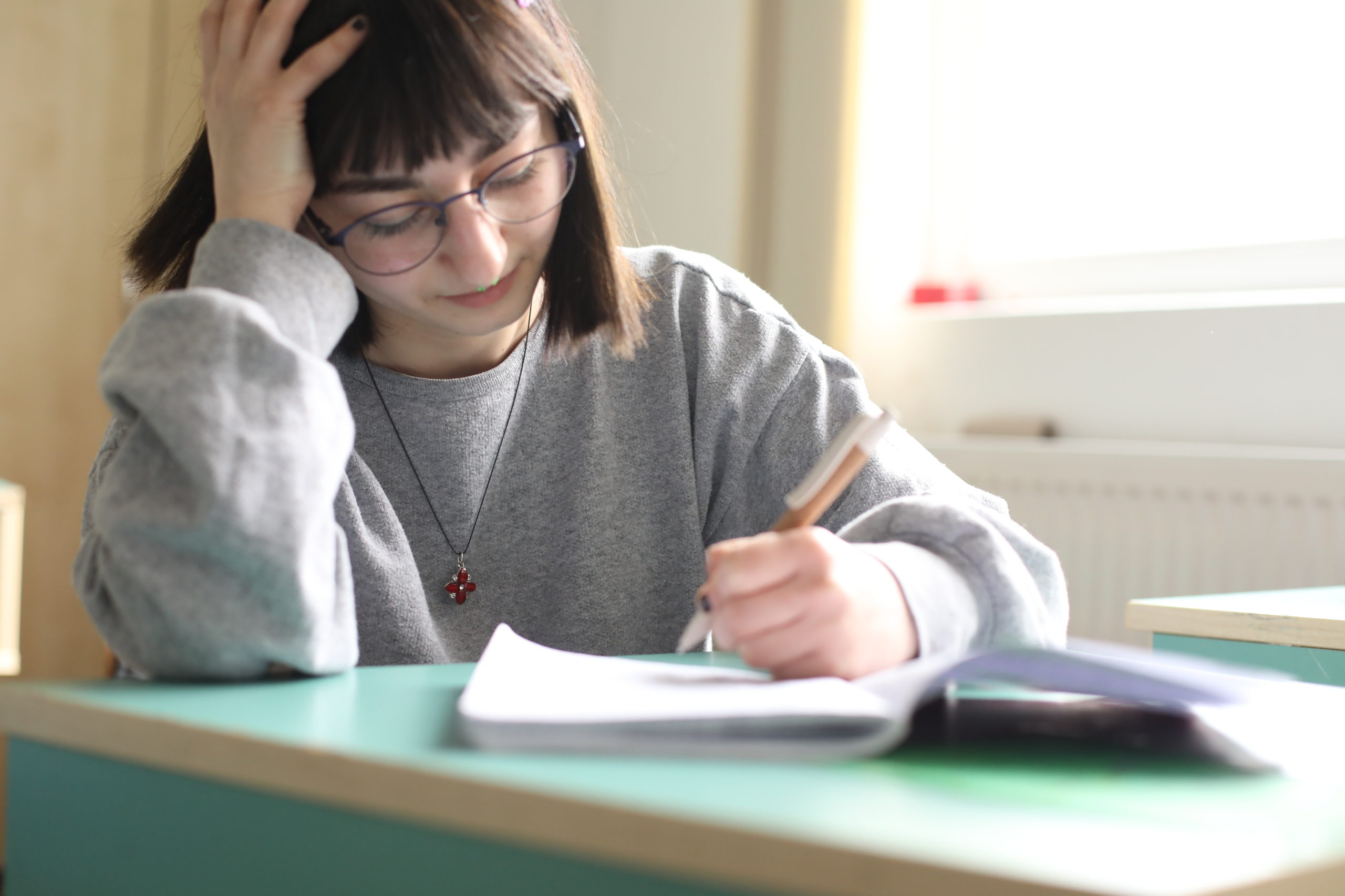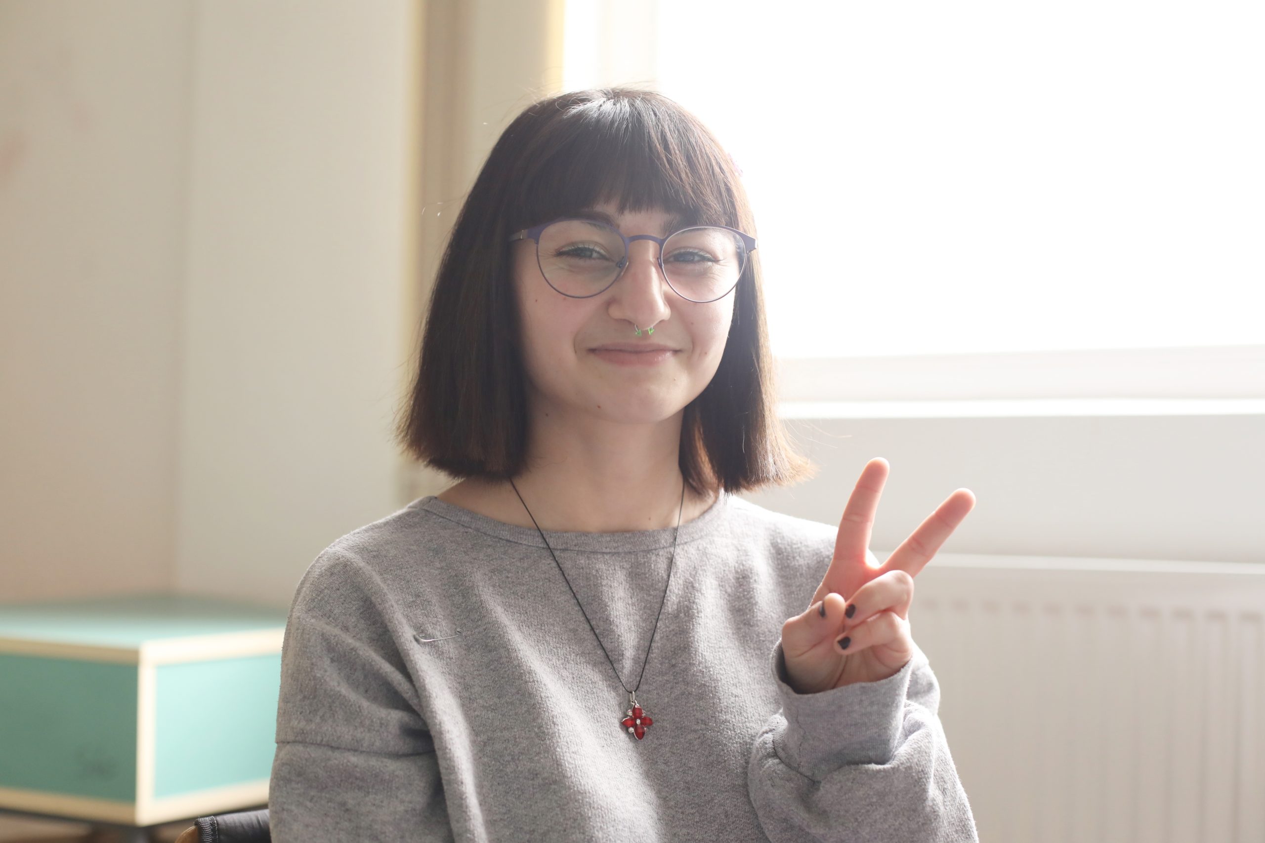 A urcat pe scenă pentru a-și interpreta textele, dar încă mai are trac și încă se lasă rugată pentru a rosti propriile texte în fața publicului. Dar scrie mult și scrie direct în engleză. Sunt scenete umoristice din viața ei de adolescentă. Învață la Liceul Teoretic Special IRIS din Timișoara, în clasa a X-a, și are caiete scrise cu diverse texte. Este doar la început…