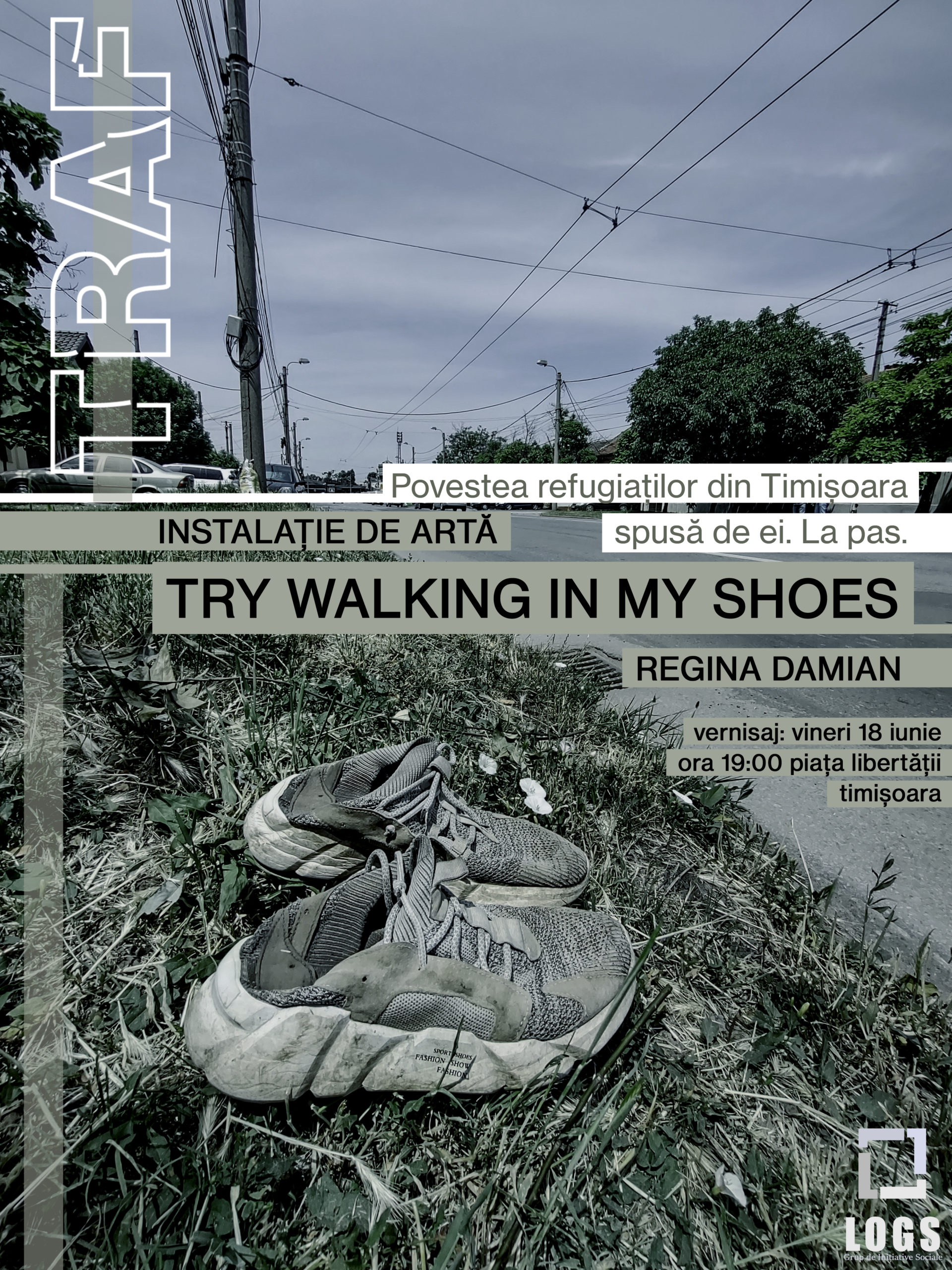 Instalația de artă „TRY WALKING ÎN MY SHOES” prezintă drumul refugiaților spre siguranță și este realizată de artista din Timișoara, Regina Damian.