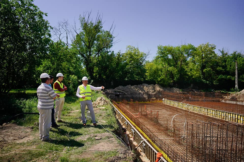 Se lucrează acum la radierul general, după care urmează suprastructura bazinului.