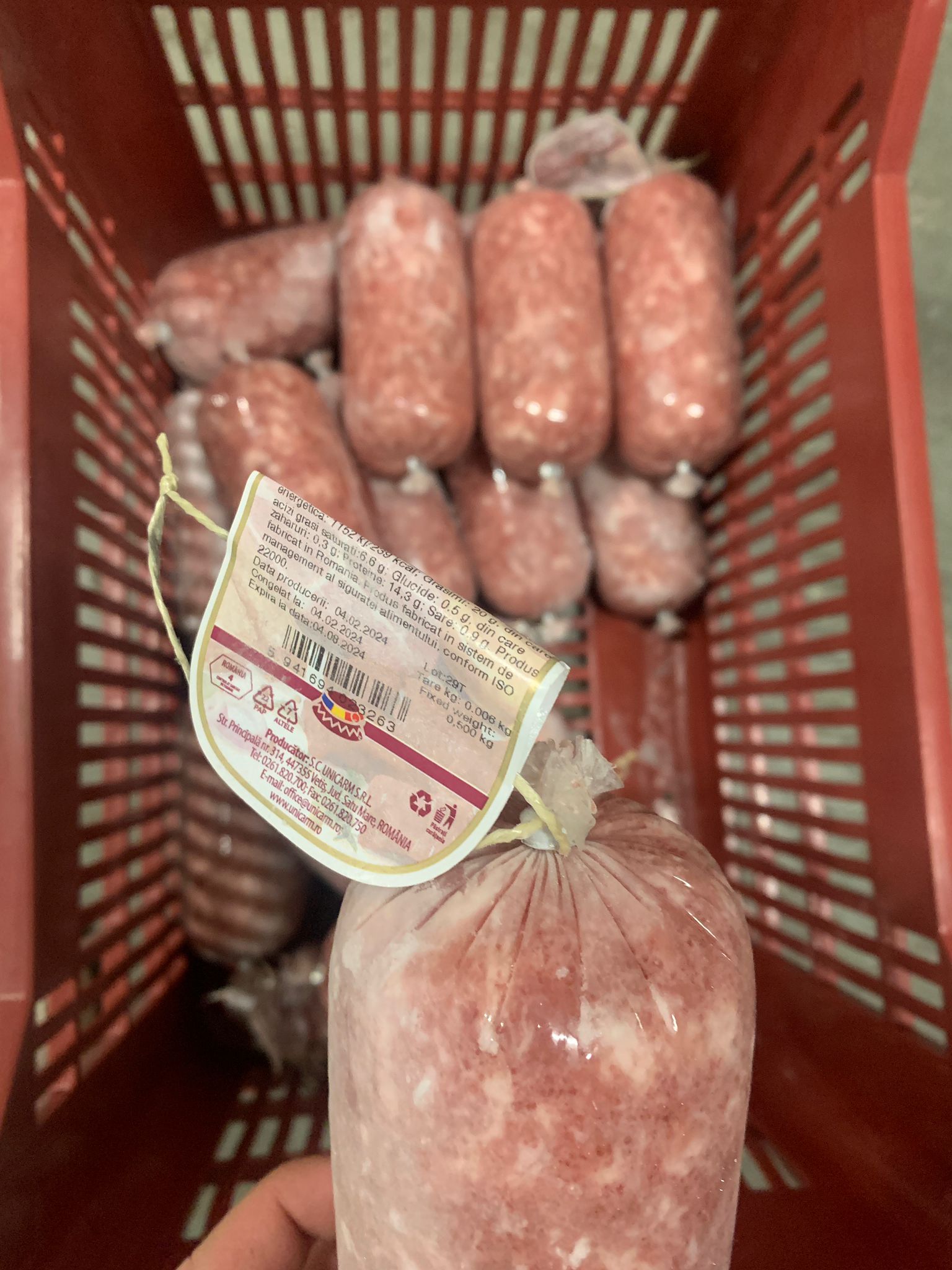 -Produse alimentare din carne de porc, congelate identificate în vitrinele frig pentru care s-a constatat că au fost transportate de la depozitul din Vetis cu o mașină care asigura o temperatură între 2-4 grade, întrerupându-se lanțul frig