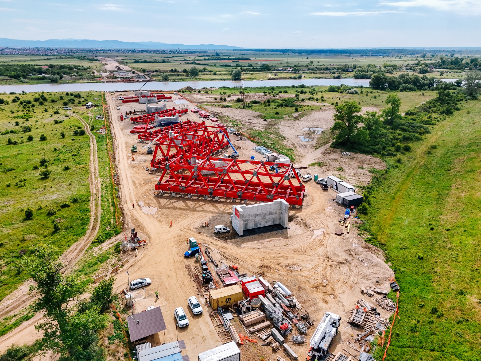 „În acest moment se montează grinzile cu zăbrele simple cu sistem triunghiular, fiind finalizate 2 din cele 9 care vor fi ansamblate. Deasemenea, au loc lucrări de construire a pilelor 7 și 8 de pe marginea râului Mureș.