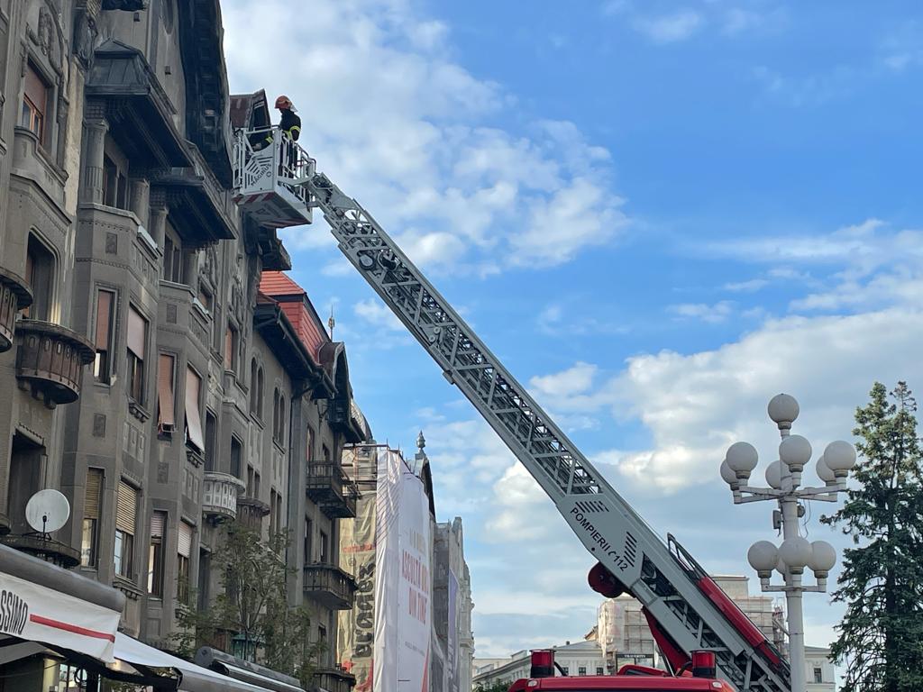 „În jurul orei 12:40, am fost solicitați, în sprijinul Poliției Locale din Timișoara, pentru a degaja niște elemente de construcție cu pericol de cădere, în Piața Victoriei, la nr. 8. Ulterior, la ora 18:23, am primit o nouă solicitare pentru a degaja elemente de construcție cu pericol de cădere, în Piața Victoriei la nr. 4. În ambele cazuri, s-a intervenit cu o autoscară de lucru la înălțime și doi pompieri, pentru degajarea elementelor care prezentau pericol de cădere”, ne-au declarat reprezentanții ISU Banat.