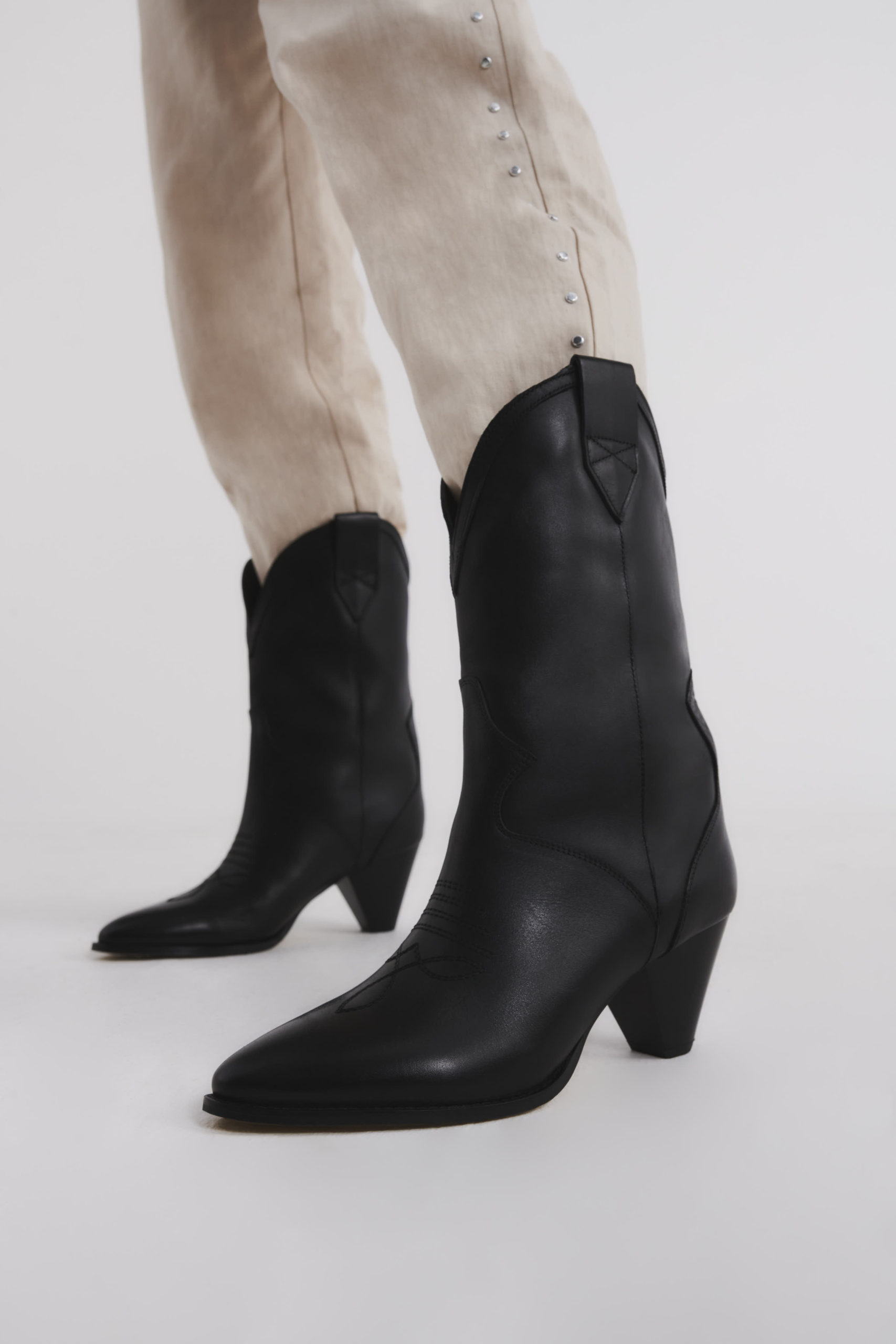 Cizmele cowboy cu vârf ascuțit oferă un aspect mai elegant și modern. Acestea pot alungi piciorul și pot adăuga un aspect mai sofisticat ținutei tale.