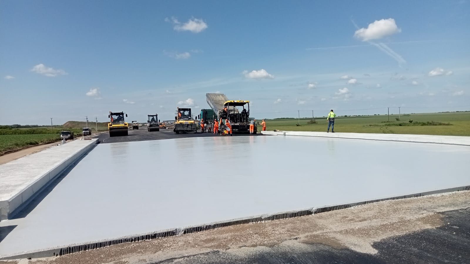 „Continuă lucrările la drum (umpluturi de balast la rampe, fundație din agregate naturale stabilizate cu lianți hidraulici, stratul de bază și cel de legătură cu mixturi asfaltice etc.), lucrările de consolidare terasamente și lucrările hidrotehnice. Se lucrează susținut și la cele 8 poduri și pasaje de pe traseu și la cele 3 noduri rutiere.