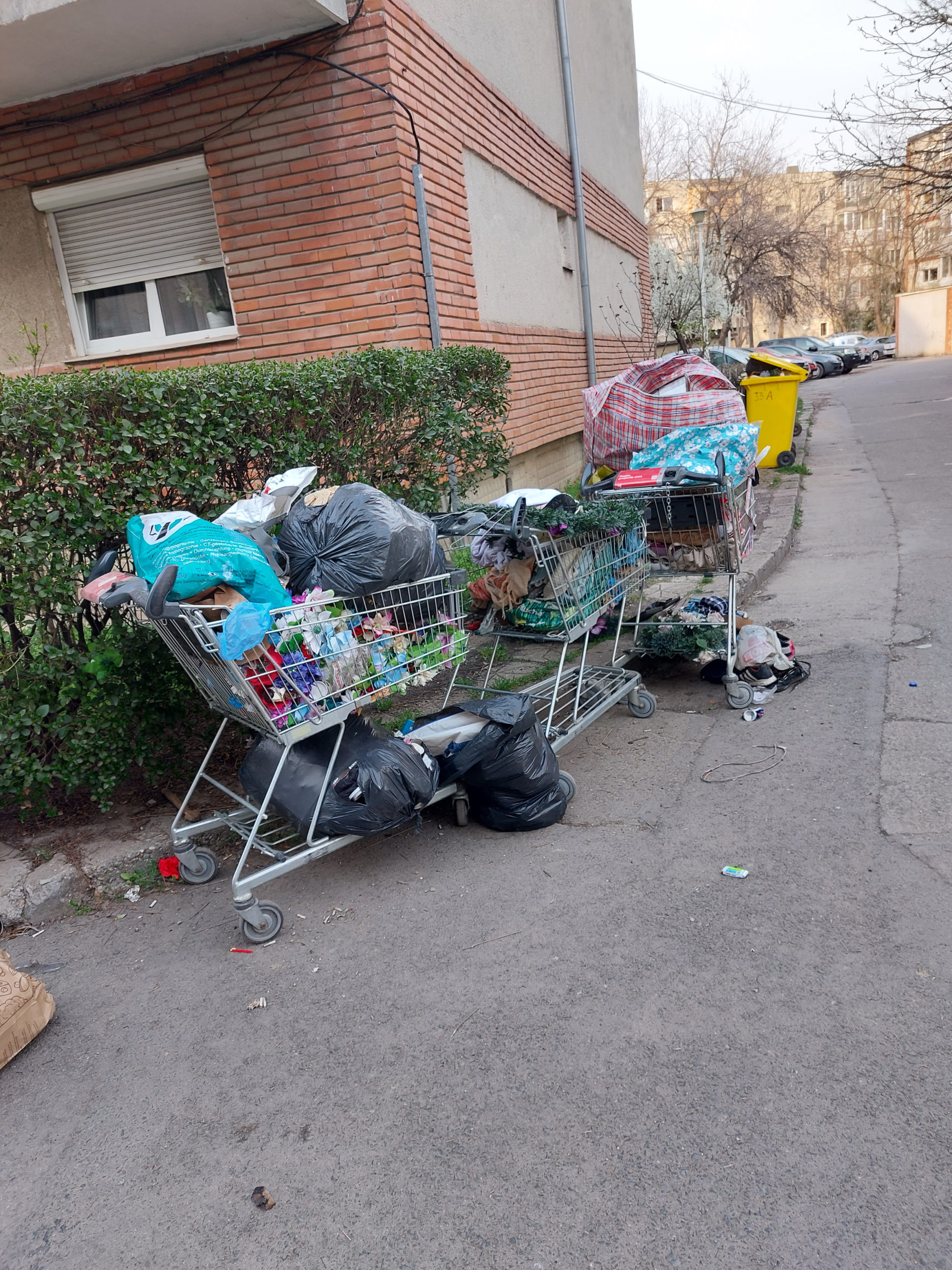 „Pe strada D. Kiriac, nr.2 au «apărut» coșurile de cumpărături cu «bunătățile» aruncate de unii concitadini. Am sesizat primăria, care, evident, ne-a mulțumit de sesizare, dar încă nu a rezolvat problema”, ne transmite unul dintre cititorii Tion.