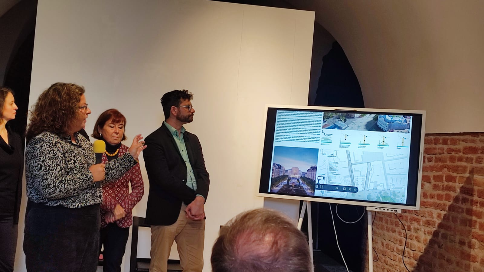 „Suprafața lui nu permitea să îl reactivăm cu o funcțiune mare, așa că ne-am gândit să facem acest amfiteatru care funcționează într-un parteneriat cu spațiul pasajului. El este suficient de mare cât să devină un spațiu în sine și prin aceasta să aibă deja o funcțiune, plus asociat cu o funcțiune de cafenea, bar, ar putea să susțină întregul spațiu expozițional. El funcționează în tandem cu acest «podium fără statuie» pe care l-am pus în zona în care s-a câștigat libertatea (în 1989 – n.r.)”, au mai declarat câștigătorii.