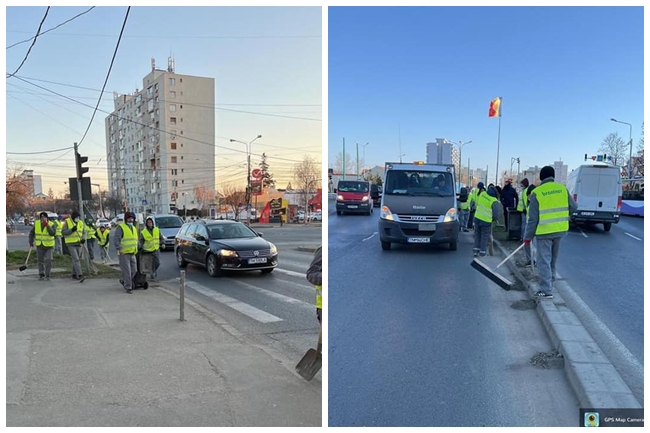 FOTO. Curățenia de primăvară continuă în Timișoara. Cu mătura și lopata pe Calea Șagului