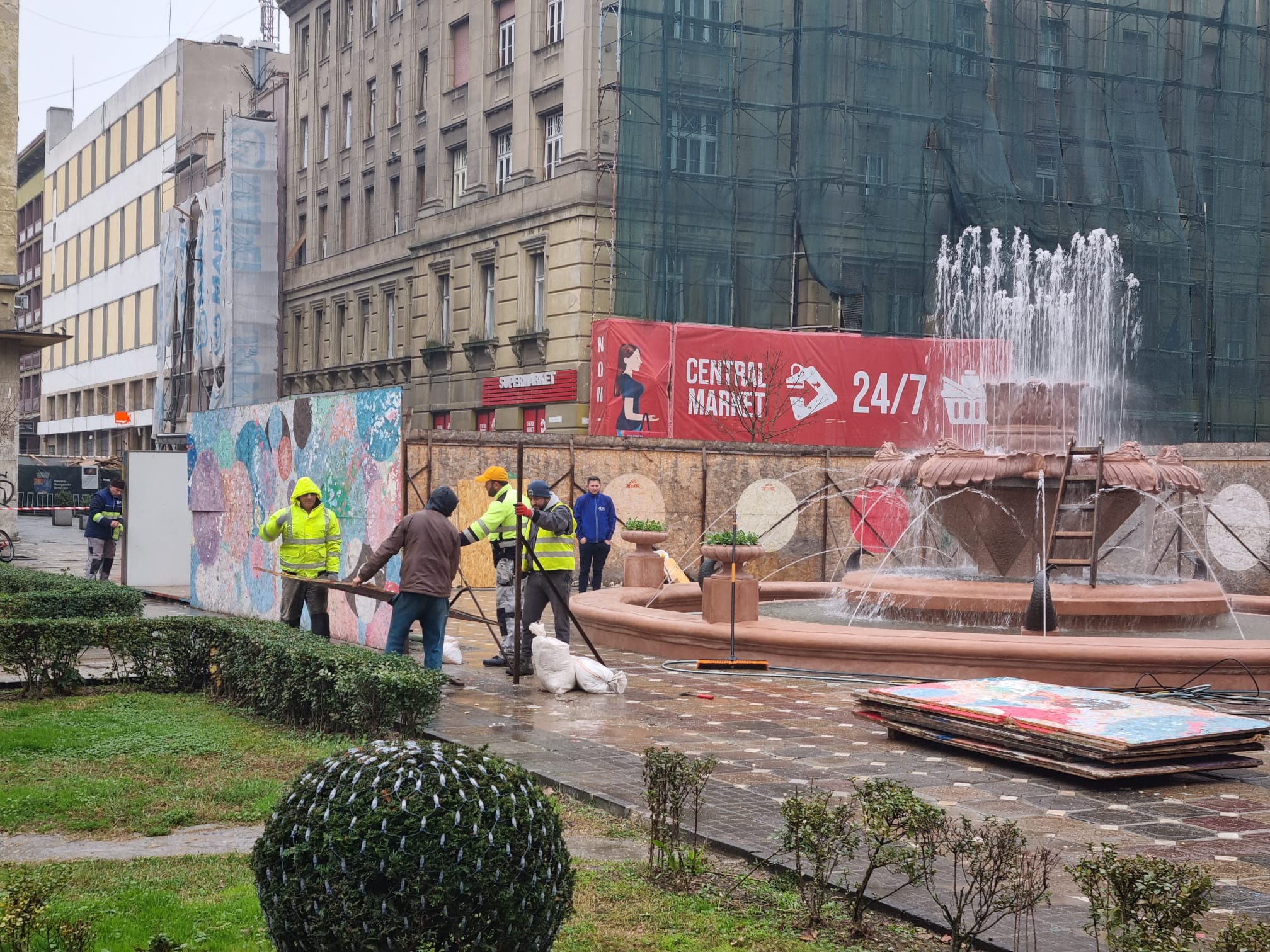 FOTO. Putem doar spera ca Fântâna cu Pești, simbol al Timișoarei, să fie gata în februarie