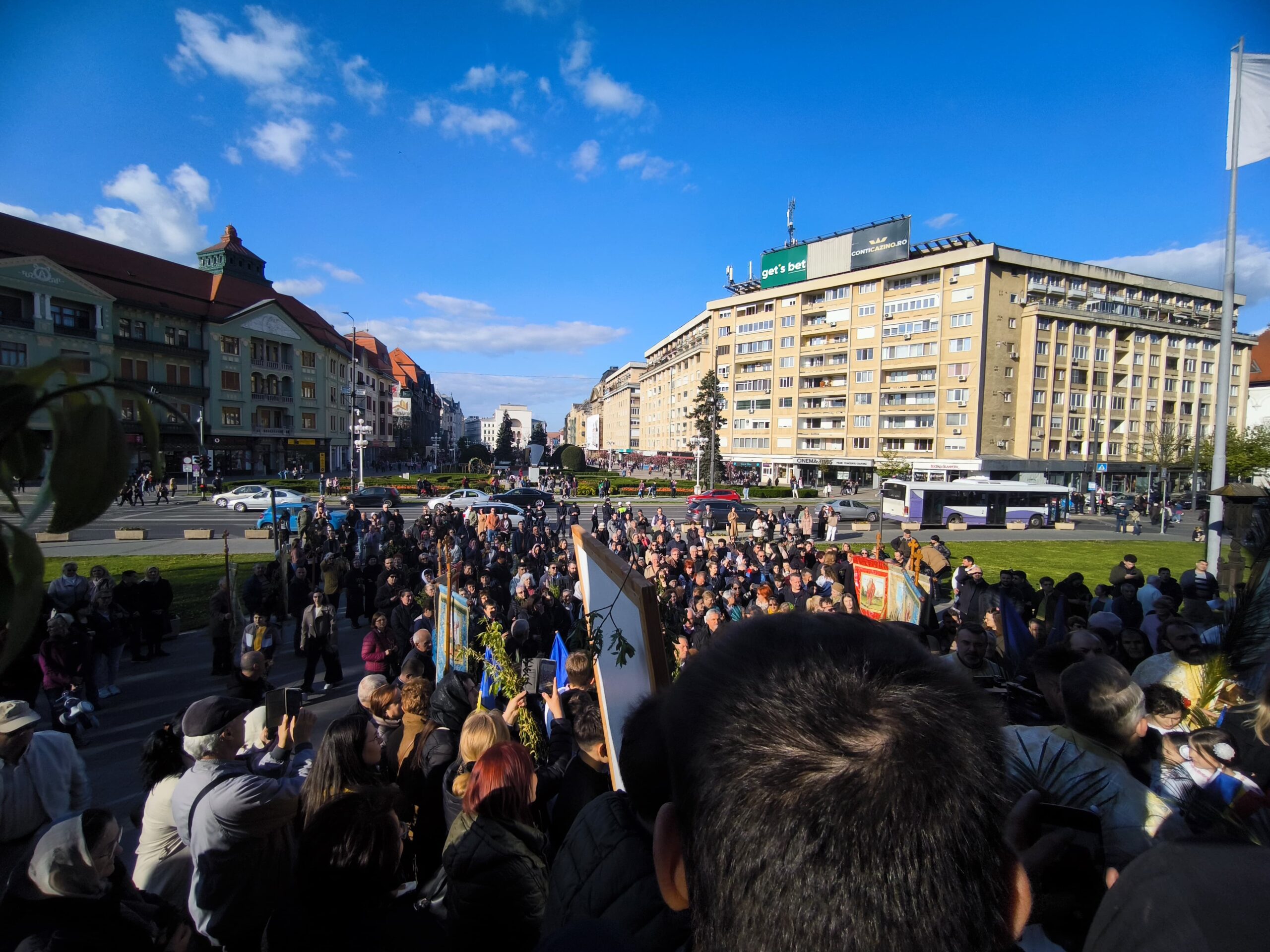 Sâmbătă, înainte de Vecernie, după sfințirea ramurilor de salcie, preoții și credincioșii au mers împreună spre Catedrală, într-un drum de sărbătoare cu icoane, cântări religioase și clopote. Momentul a amintit de intrarea lui Iisus în Ierusalim, fiind trăit cu emoție de toți cei prezenți.