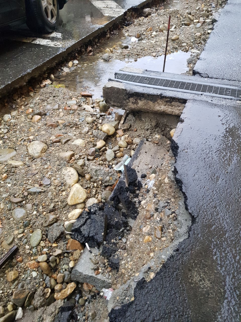 „Aștept de trei ore, ca să zic așa, să vină cineva să astupe gaura respectivă, nu a venit nimeni, într-un final m-am pus eu. Am luat o lopată și încerc cu balastru să astup cumva gaura, ca în cazul în care mai vine ploaia din nou să nu mă inunde din nou. În momentul în care se oprește ploaia apa se duce, intră în pământ din căminul respectiv și nu mai intră în încăpere, dar în momentul în care va ploua din nou torențial, probabil se va umple din nou.