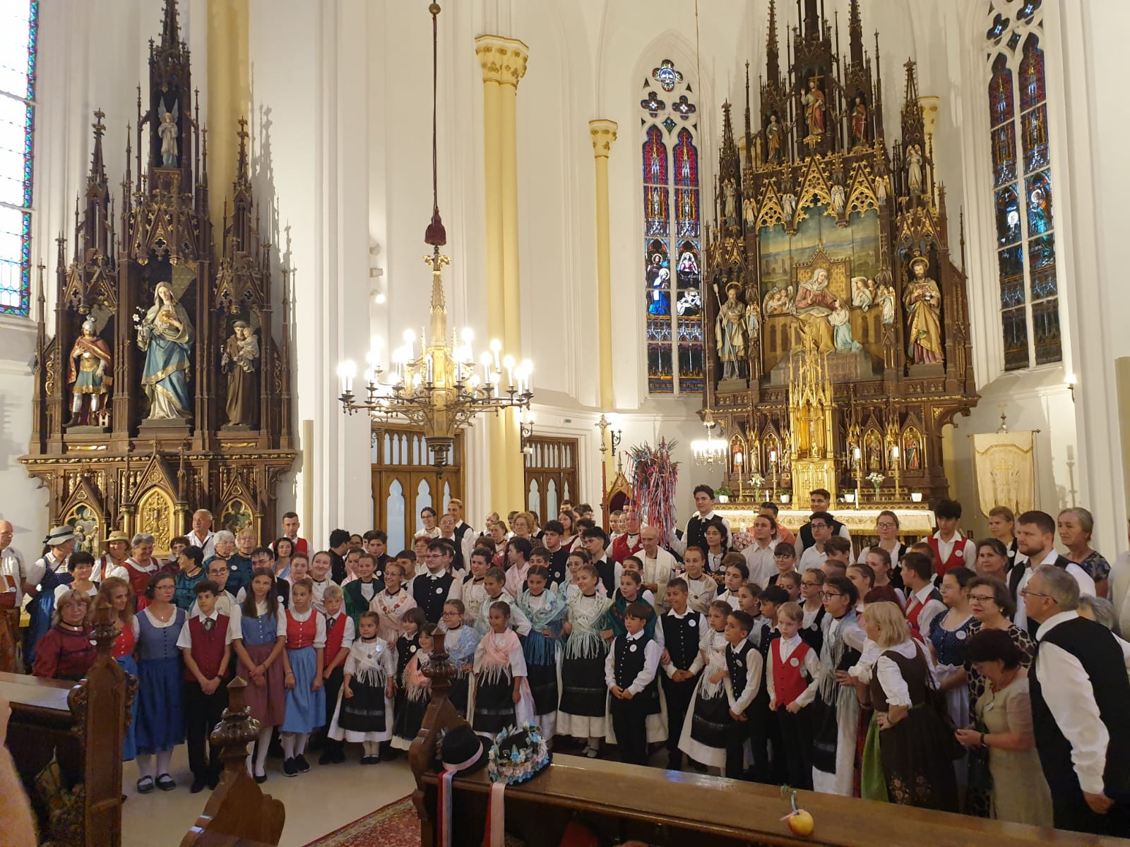Tinerii din comunitatea germană au defilat prin Deta în straie de sărbătoare. Pentru etnia germană, Kirchweih înseamnă sărbătoarea anuală a hramului bisericii romano-catolice dintr-o anumită așezare, cum este Ruga la ortodocși.