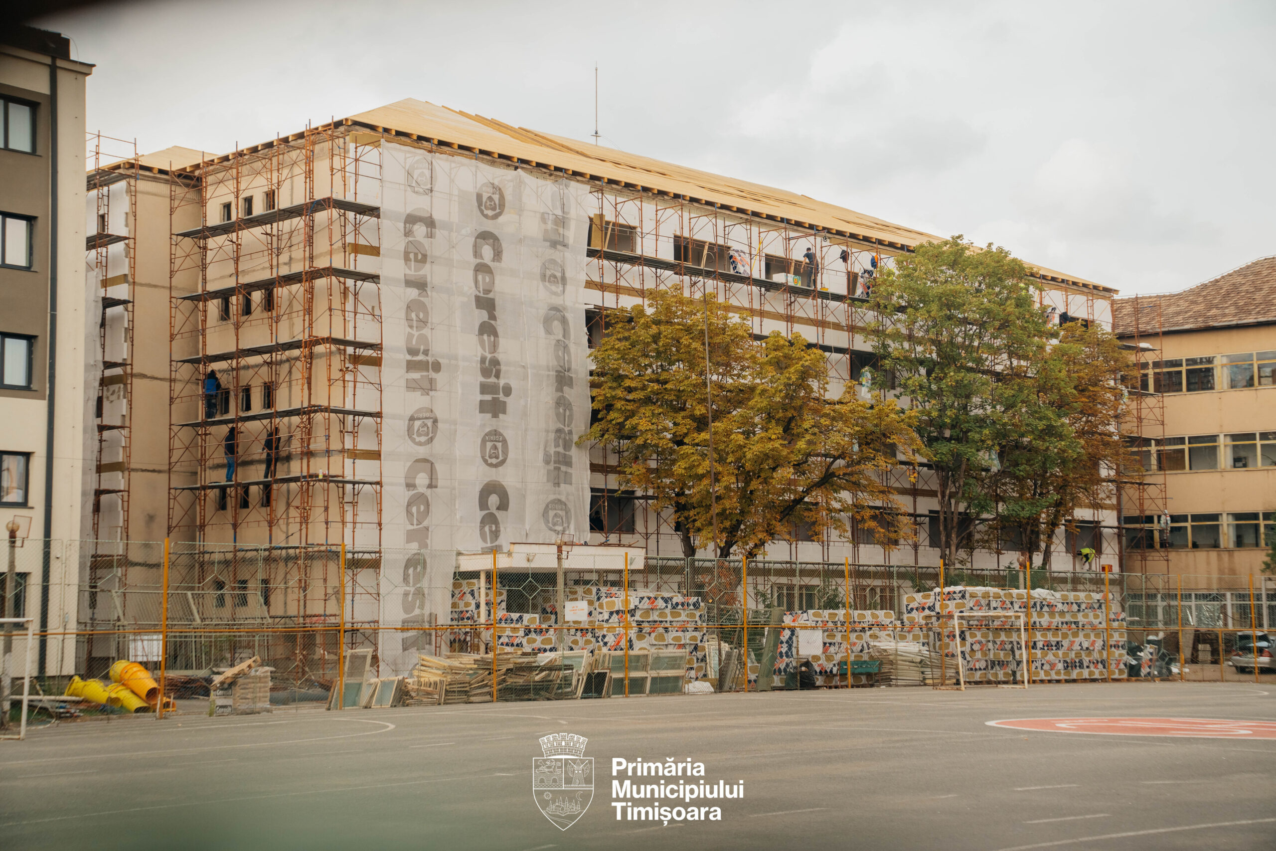 Mai precis, se lucrează la clădirea internatului, unde se pregătește învelitoarea noului acoperiș. Sunt „atacate” și instalațiile electrice și termice interioare, iar izolarea termică a fațadei este finalizată deja în proporție de 70%.