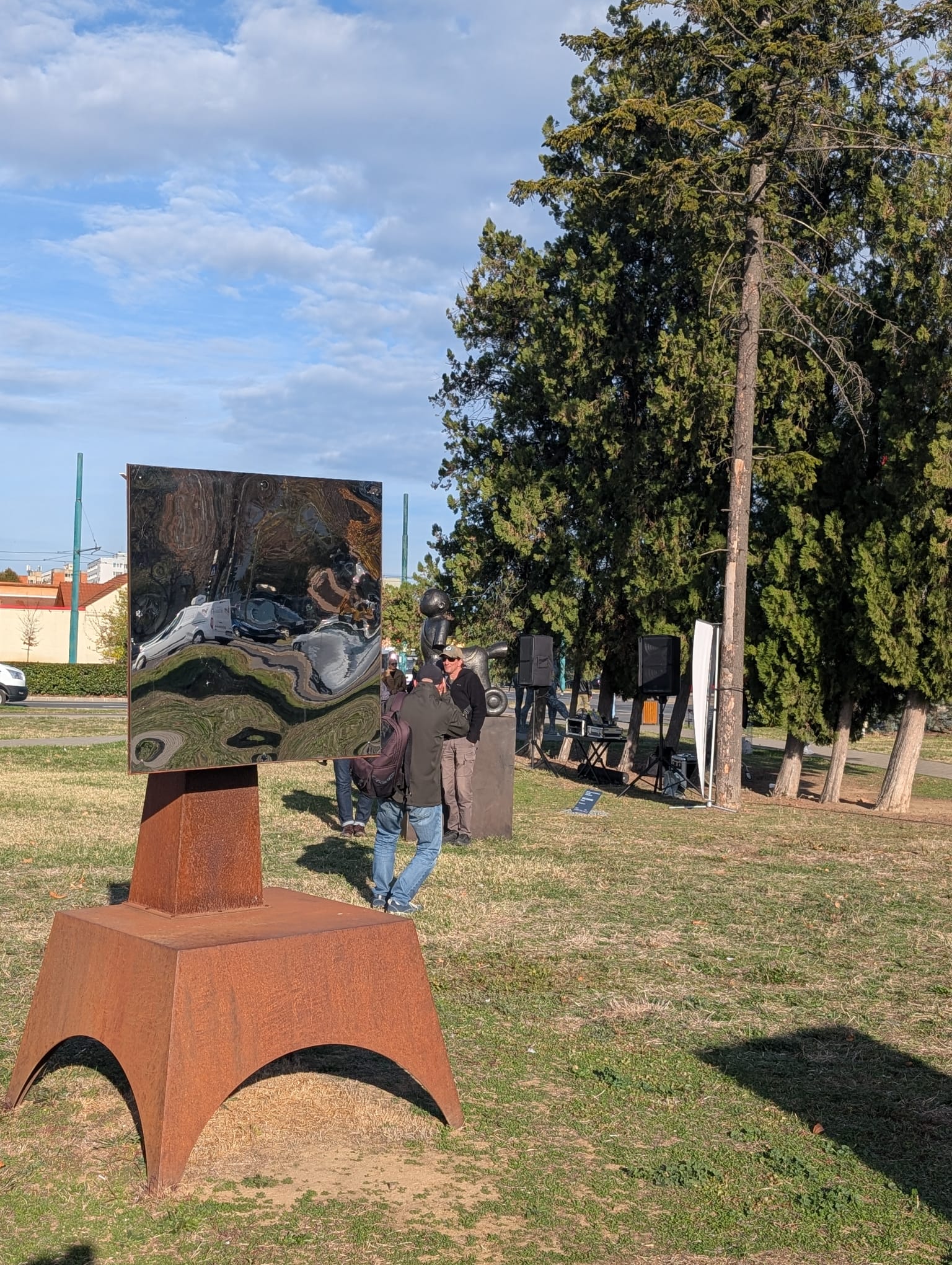 Dacă vi se pare că este un spațiu care nu este potrivit, nefiind în centrul orașului, vreau să vă spun că este spațiul pe care eu mă bucur cel mai tare că-l avem pentru că expune lumea dintr-un cartier important al Timișoarei, care este Calea Șacului, la această baie de artă și de cultură. Am stat două zile pe pajiștea asta ca să văd cum se «plantează», ca să spun așa, lucrările în spațul acesta. O generație de copii și de oameni foarte tineri este pusă în fața actului cultural care este în spațiul public, ceea ce va asigura o comunitate mai bună, o comunitate mai atașată de actul cultural, o comunitate pe care să ne putem baza în perspectiva următorilor ani că va avea de spus un cuvânt despre libertate”, a transmis Sorina Jecza, președintă a Fundației Interart TRIADE/JECZA.