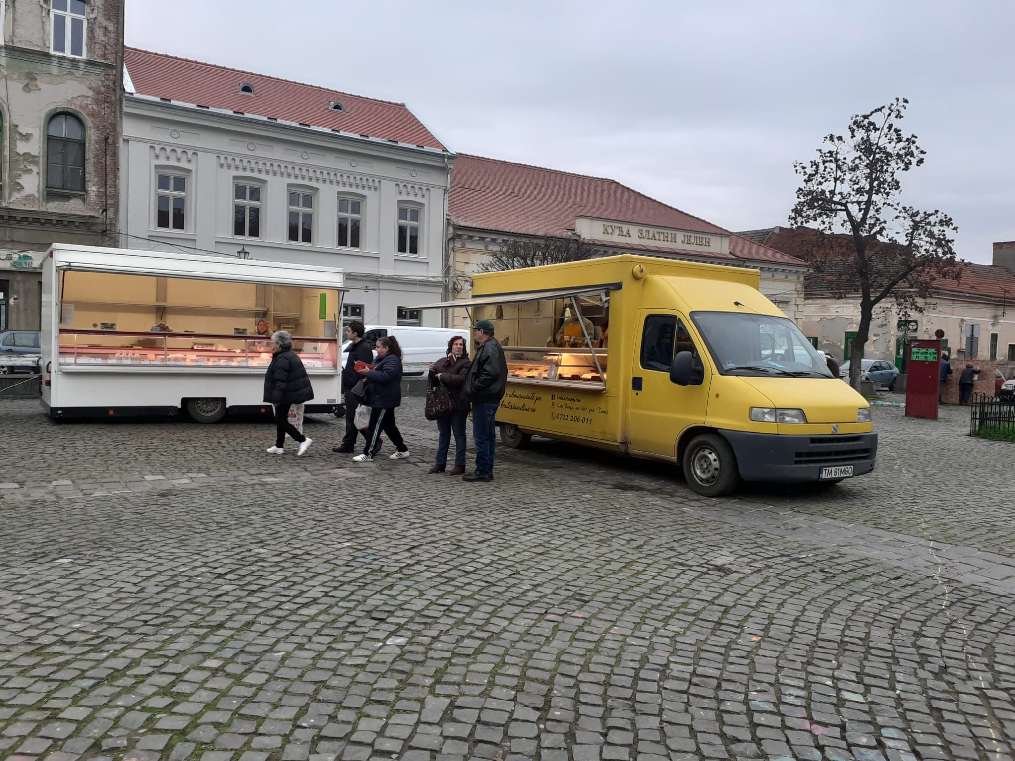 Vineri, 9 decembrie, în Piața Traian din Timișoara a fost testat conceptul de piață volantă pe roți. Producătorii din localități precum Parța, Sârbova, Liebling sau Timișoara și-au așteptat clienții cu produse lactate, ouă, diverse mezeluri și produse de patiserie, preparate după rețete tradiționale.