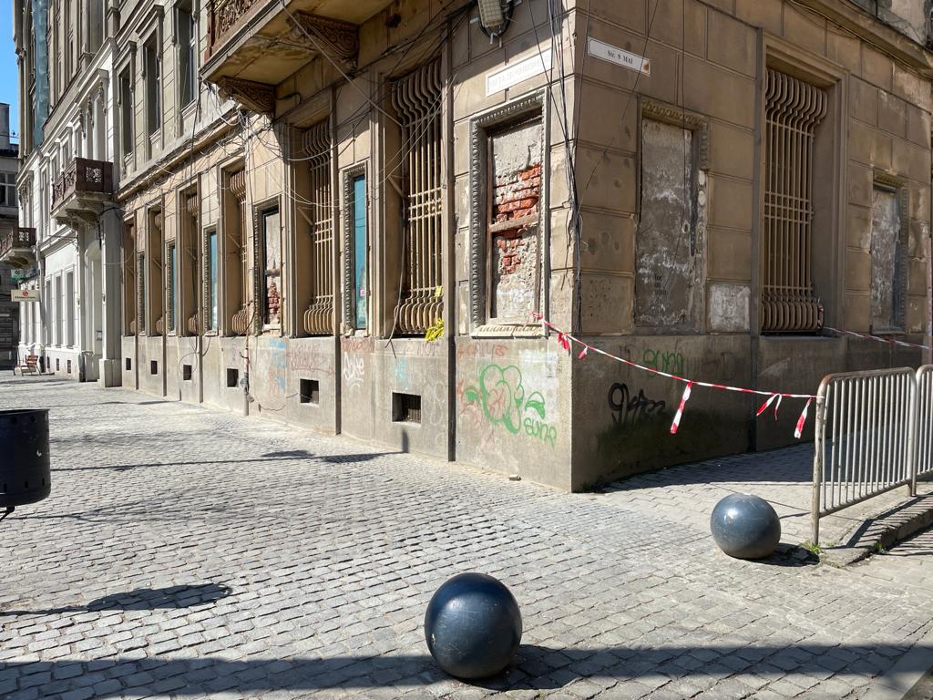 Până atunci, imobilele aflate în stare avansată de degradare rămân un pericol pentru trecători. Este și cazul primului palat bancar al orașului, finalizat în anul 1855, marcat acum cu bandă alb cu roșu. Există din nou amenințarea să pice bucăți din tencuială de pe clădirea din Piața Sf. Gheorghe 1, pe partea cu linia de tramvai.