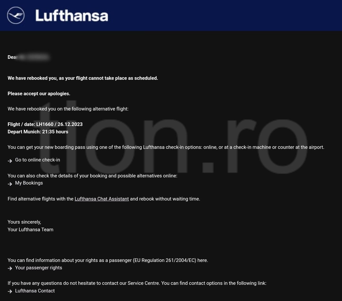 Compania Lufthansa nu a putut fi contactată pentru a explica cele întâmplate, call-centerul fiind închis din cauza sărbătorilor.
