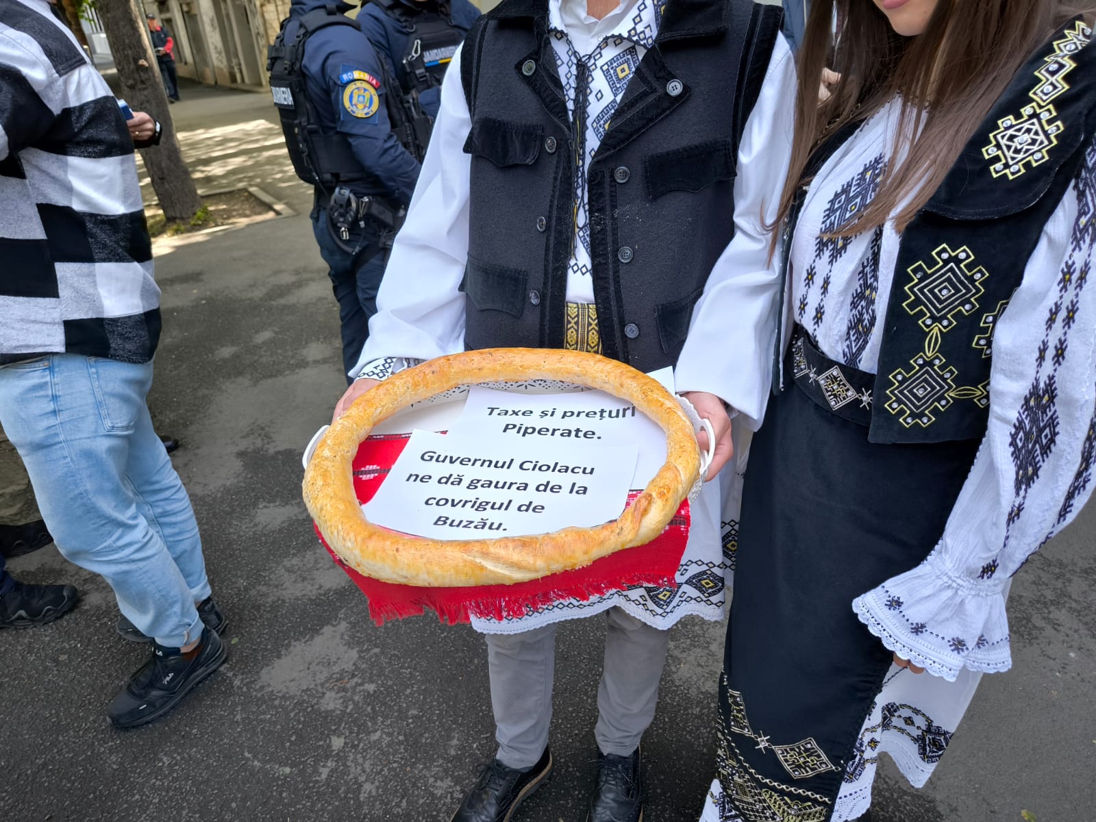 Totodată, protestatarii au făcut și o aluzie cu covrigul de Buzău.