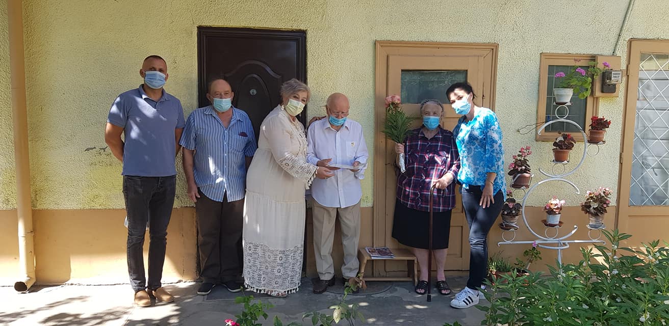 Înconjurat de familie, Constantin Călina a primit vizita surpriză a reprezentanților Direcției de Asistență Socială a Municipiului Timișoara. A primit un tort aniversar și o diplomă, pregătită special pentru acest eveniment și semnată de Dominic Fritz.