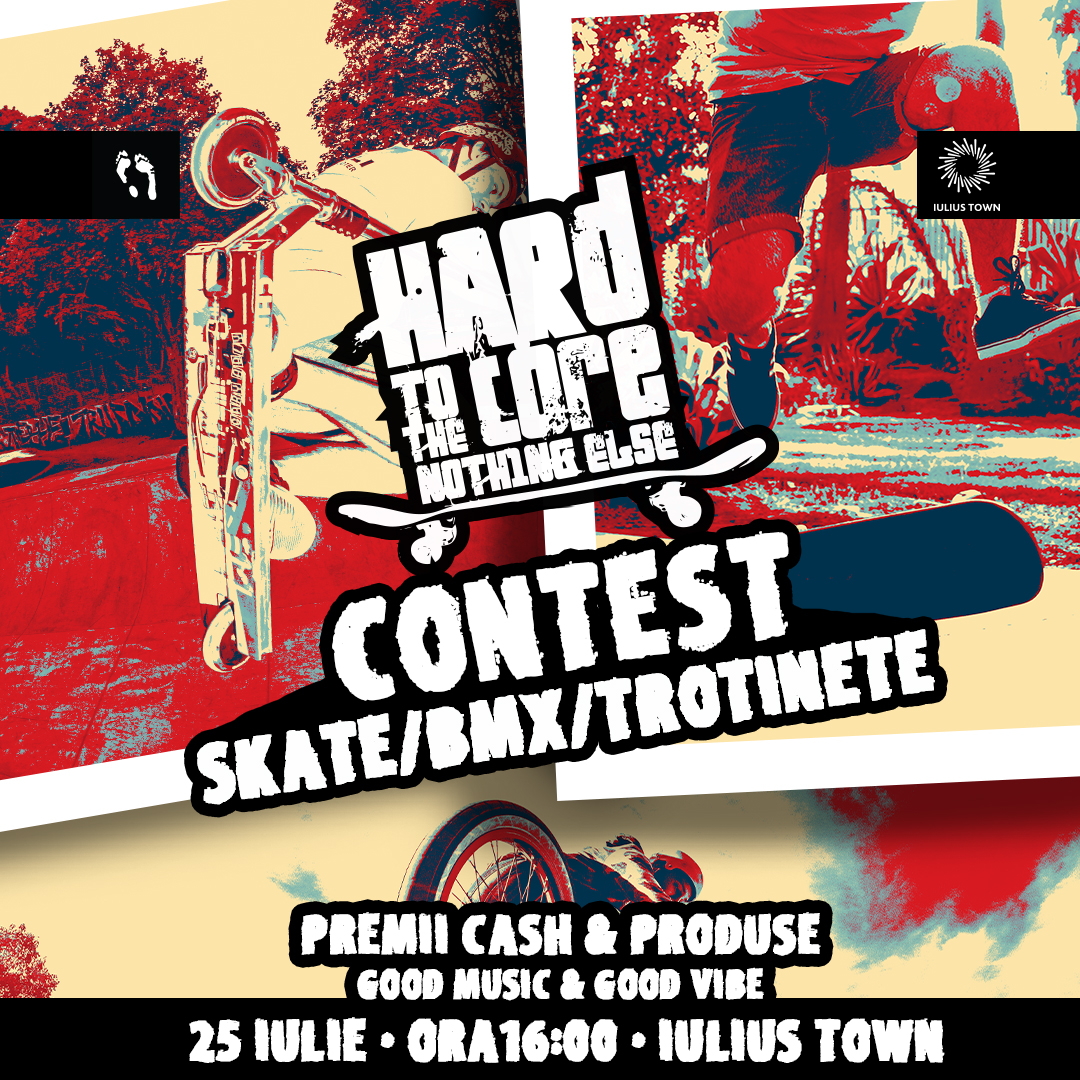 Tot sâmbătă, îi provocăm pe cei atletici la evenimentul sportiv „Hard to the Core”, în cadrul căruia vor fi demonstrații și concursuri de trotinete, biciclete BMX și skate-uri. Sunt puse „în joc” și multe premii. Vino în zona Family Plaza, de la ora 16.00, să facem mișcare împreună! Evenimentul este organizat în parteneriat cu magazinul UMAN din Iulius Town Timișoara.