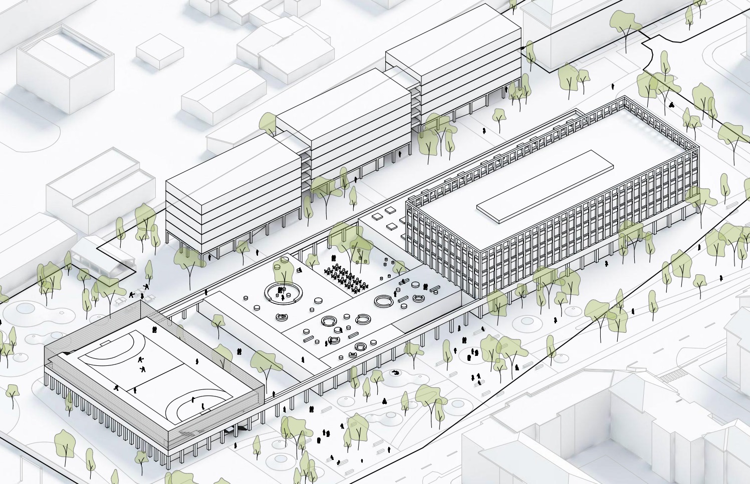 „Transformăm un teren viran în parc, cu spații de relaxare și recreere pentru locuitorii din zonă. Gândirea noastră a fost să construim nu doar un campus, ci și un spațiu deschis comunității și elevilor care vor studia și vor locui acolo. Campusul va fi de fapt în mijlocul unui parc de patru ori mai mare decât Parcul Sudului, care se află în apropiere”, anunță primarul Dominic Fritz.