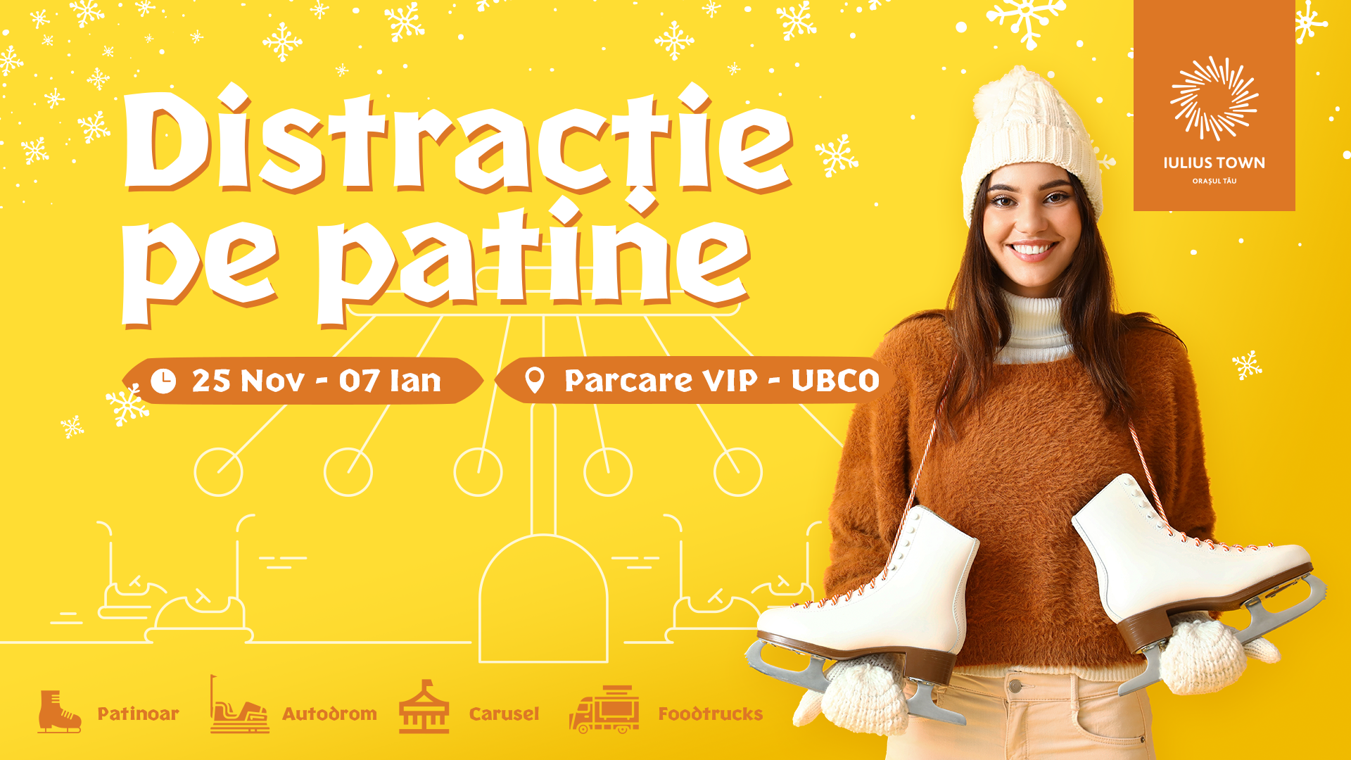 Patinajul este, poate, cea mai graţioasă și distractivă formă de mișcare și, totodată, unul dintre cele mai îndrăgite sporturi de iarnă. Astfel, începând de sâmbătă, 25 noiembrie, în Iulius Town toţi iubitorii acestui sport dinamic și plin de expresivitate sunt așteptaţi la patinoarul amplasat în parcarea VIP – UBC 0.