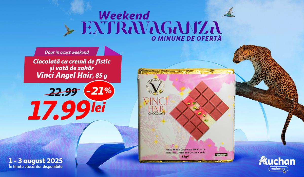 Nu rata ocazia! Hai la Auchan și descoperă o minune de ofertă la produsele în trend, doar în acest weekend – de vineri, 1 august, până duminică, 3 august, în magazine și online pe www.auchan.ro/weekend-extravaganza.
