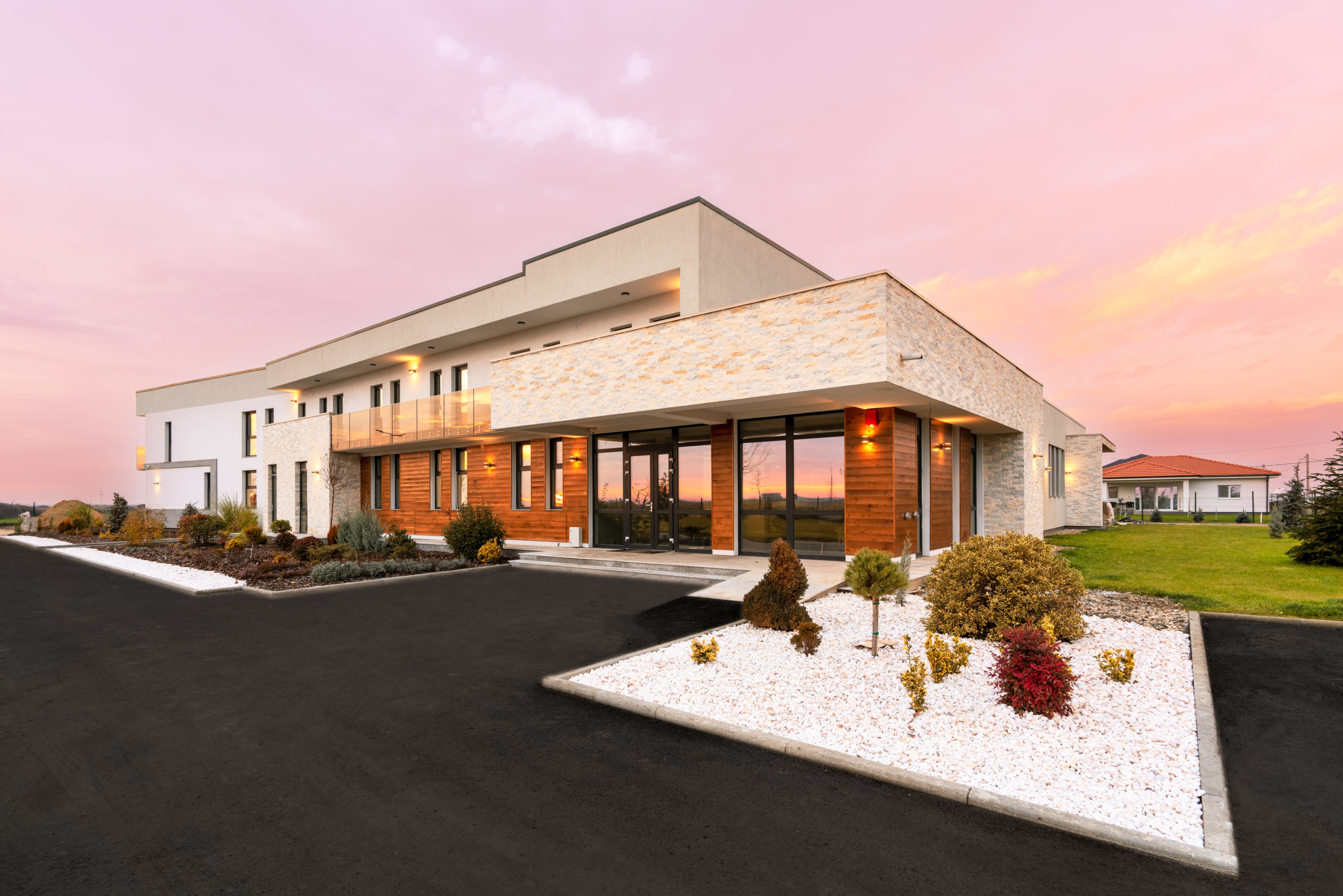 Camerele noastre sunt decorate și finisate într-un stil primitor, iar spațiile comune de vizită, restaurantul și biblioteca oferă un loc confortabil pentru a petrece timpul liber. Avem de asemenea un spațiu exterior generos, cu parc, foișor și curte interioară pentru plimbări și activități.