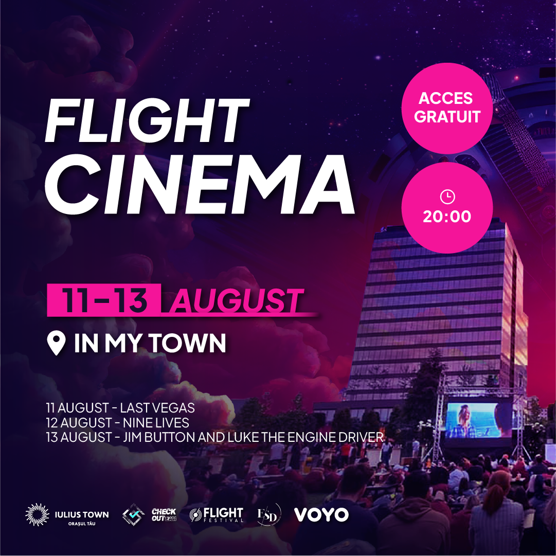 Serile de Flight Cinema in My Town încep, conform tradiției, cu câte un film pentru fiecare zi de weekend. Astfel, vineri, de la ora 20.00, ne așezăm pe pufurile din Iulius Gardens pentru comedia Last Vegas, unde Michael Douglas, Robert De Niro, Morgan Freeman și Kevin Kline ne vor aduce zâmbetele pe buze prin intermediul întâmplărilor hilare prin care vor trece. Sâmbătă, de la aceeași oră, ne uităm la comedia Nine Lives și încercăm să nu râdem cu lacrimi atunci când un om de afaceri ursuz se trezește în corpul unei pisici. Duminică, de la 20.00, ne aventurăm împreună cu Jim Button and Luke the Engine Driver într-o poveste magică și plină de întâmplări curajoase, menite să îi ambiționeze pe cei mici, cu vise mari.