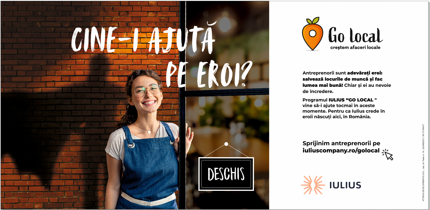 Compania IULIUS, singurul dezvoltator de proiecte mixed-use de regenerare urbană din România, lansează programul Go Local, prin care pune la dispoziția antreprenorilor locali infrastructura sa de retail din marile orașe în care este prezent, cu scopul de a stimula afacerile locale într-un moment în care reziliența acestora este pusă la încercare. Cafeneaua din drumul spre birou, magazinul cu preparate tradiționale, florăria cu aranjamente deosebite sau o locație cu haine create local – și multe alte exemple – sunt business-uri care ne aduc un plus în viața de zi cu zi și care salvează locuri de muncă, iar programul Go Local reprezintă o platformă de susținere și promovare a lor. Inițiativa se înscrie în strategia de sustenabilitate a companiei – IULIUS în comunitate – care are în centru aspectele de mediu, investițiile în oameni și comunitate, cu accent pe cele mai bune practici în guvernanța corporativă și de etică în afaceri.