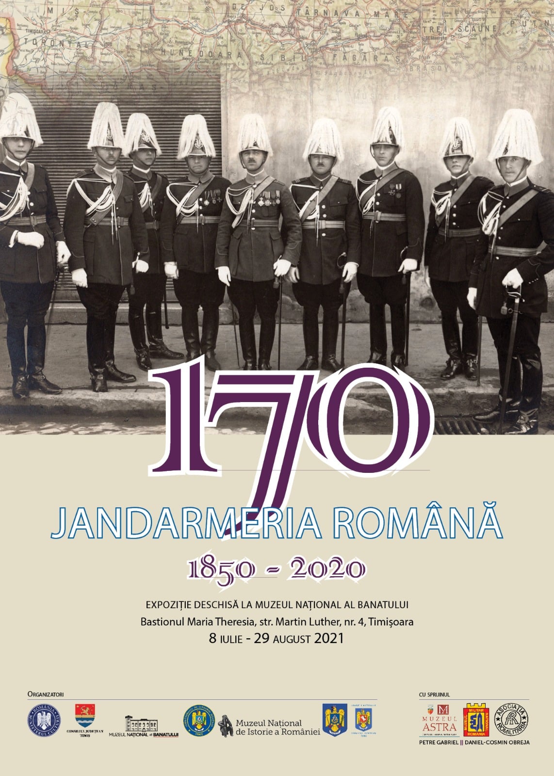 Muzeul Național de Istorie a României (MNIR), în parteneriat cu Muzeul Național al Banatului, anunță deschiderea expoziției itinerante „Jandarmeria Română 1850 – 2020”, organizată cu ocazia aniversării a 170 de ani de la înființarea Jandarmeriei Române. Este a patra instituție din România care găzduiește expoziția cu tematică militară. A fost vizitată întâi la MNIR în intervalul 29 iulie – 8 noiembrie 2020, apoi deschisă la Muzeul Orașului Oradea – Complex Cultural (8 decembrie 2020 – 24 martie 2021), Complexul Muzeal Arad (2-5 aprilie 2021) și la Muzeul Județean Buzău (12 mai – 27 iunie 2021).