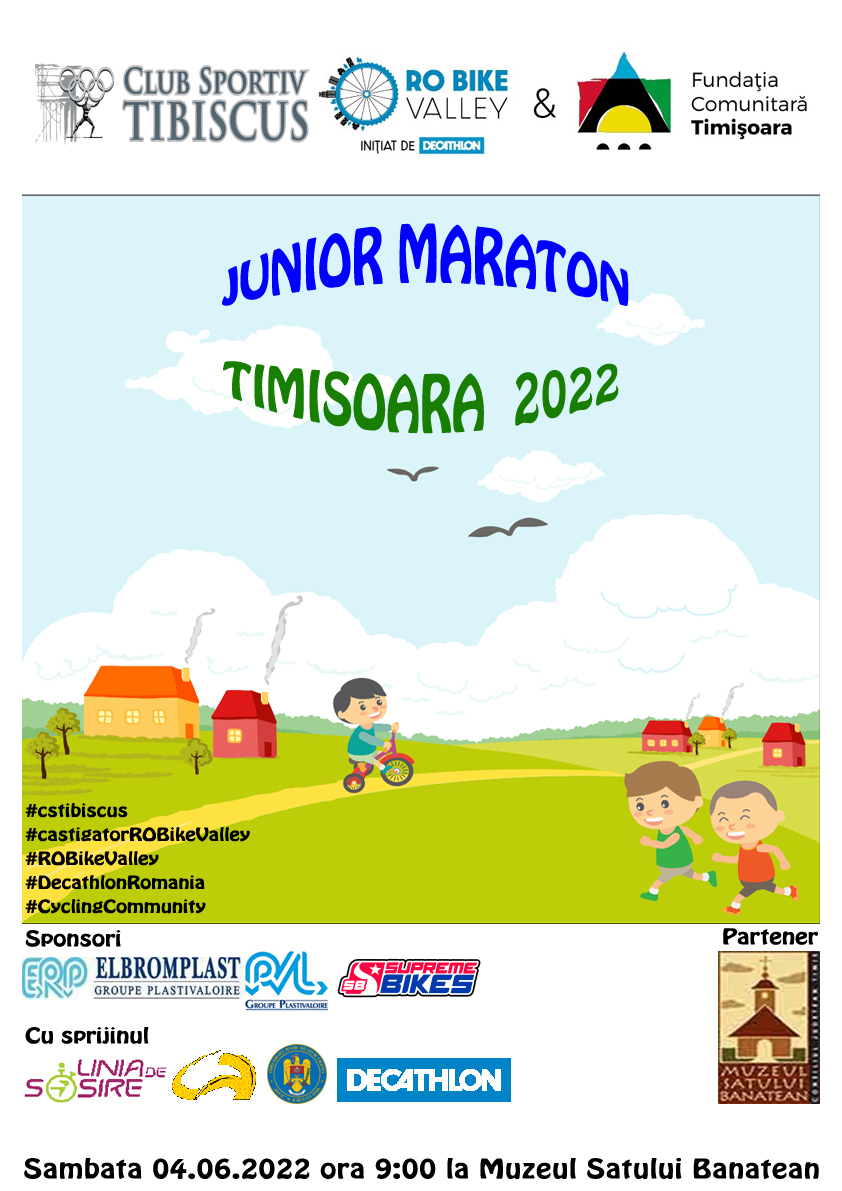 Junior Maraton este organizat de Clubul Sportiv Tibiscus și se desfășoară în cadrul unui proiect finanțat prin „Fondul Ro Bike Valley” cu sprijinul Fundaţiei Comunitară Timişoara și susținut de Decathlon România.