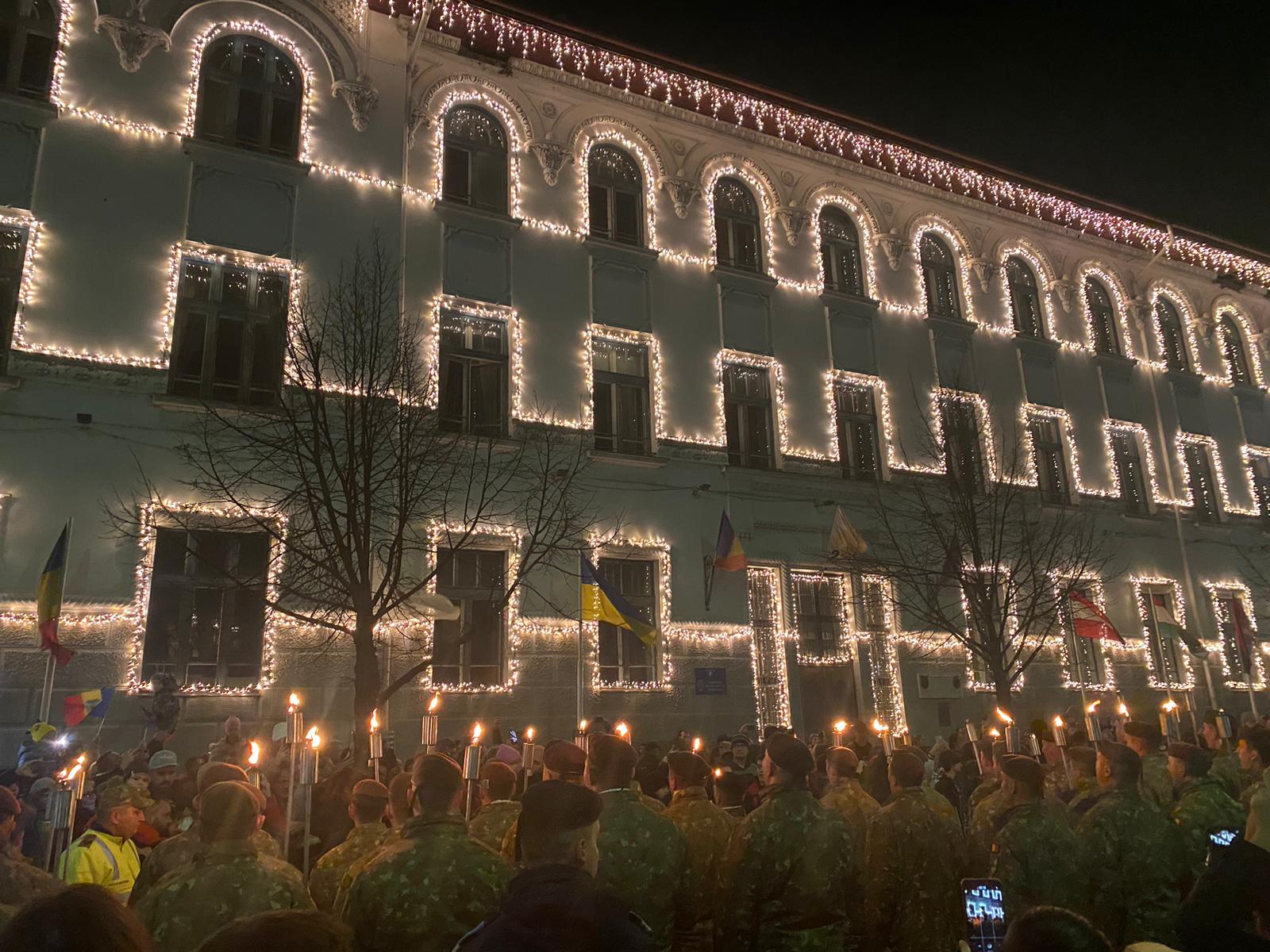 De la ora 17.45 a avut loc o ceremonie militară de retragere cu torțe pe traseul Strada Mărășești nr 6-7; Str. Sf. Ioan; Bulevardul Republicii, Bulevardul Regele Ferdinand I; Catedrala Mitropolitană; Primăria Municipiului Timișoara; Bd. C.D. Loga; Mitropolia Banatului; Bd. Revoluției din 1989; Instituția Prefectului – Județul Timiș; Piața Sf. Gheorghe; Str. 9 Mai; Piața Libertății; Str. Alba Iulia; Piața Victoriei (19:30); Str. Mărășești nr 6-7.