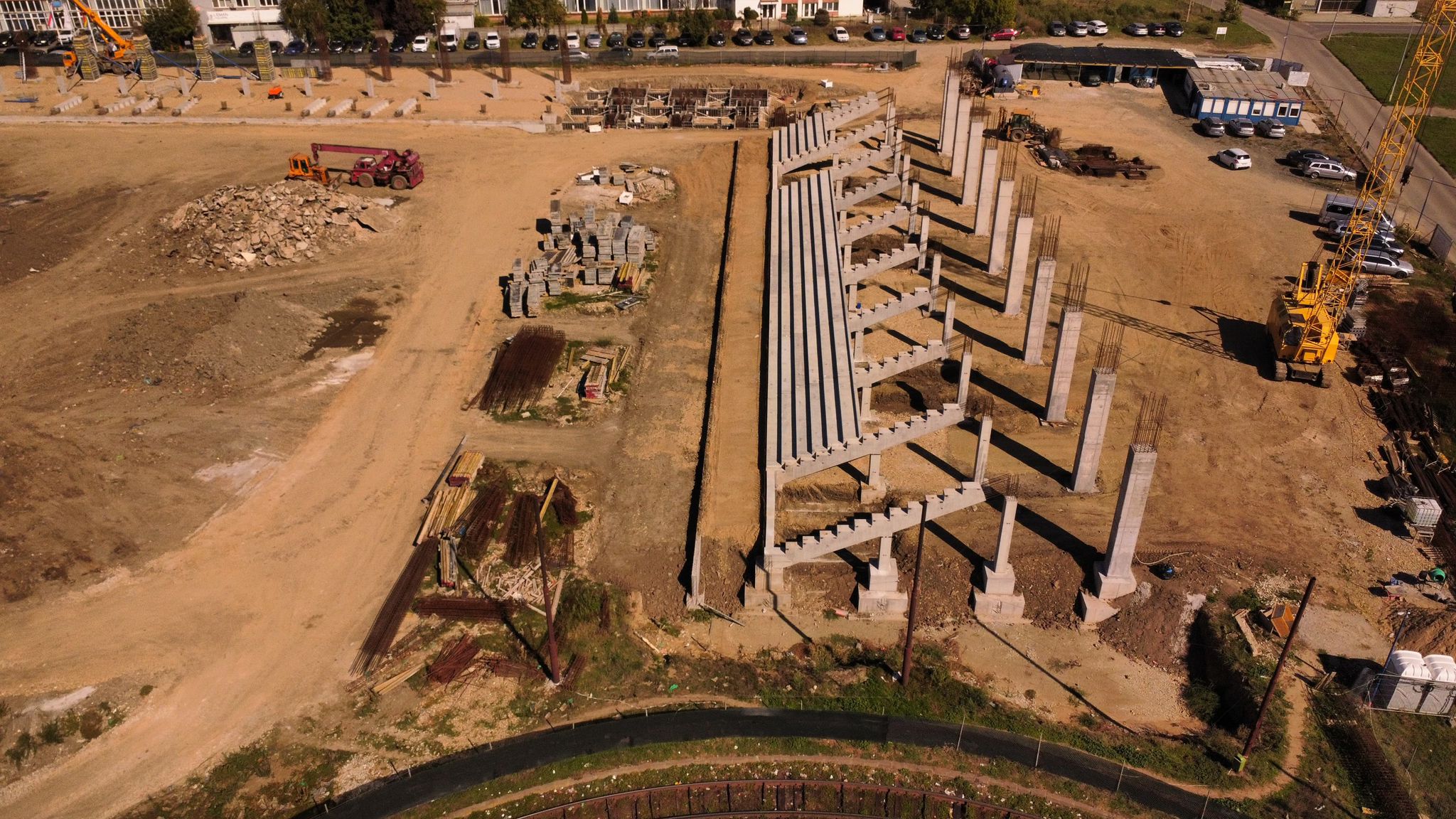 Potrivit reprezentanților primăriei, la Peluza Est și Vest au fost turnați stâlpii de structură din beton și au fost montate și o parte din gradenele pentru locurile de stat jos. La Tribuna Nord lucrările la fundație sunt pe final. Aici, dar și la Tribuna Sud, se toarnă stâlpii monoliți pentru structura de sprijin.