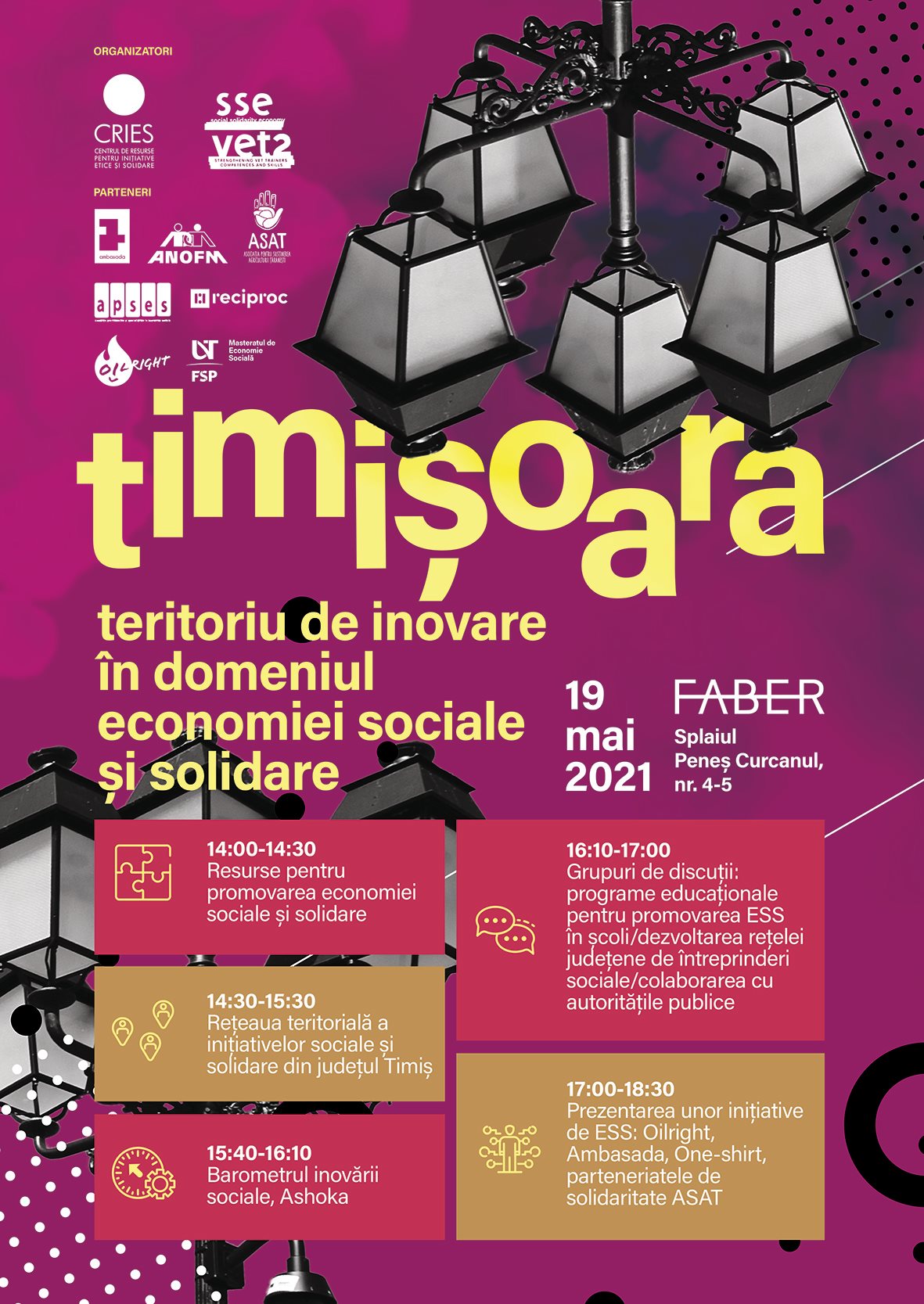 - 14:30 – 15:30: Rețeaua teritorială a inițiativelor sociale și solidare din județul Timiș;