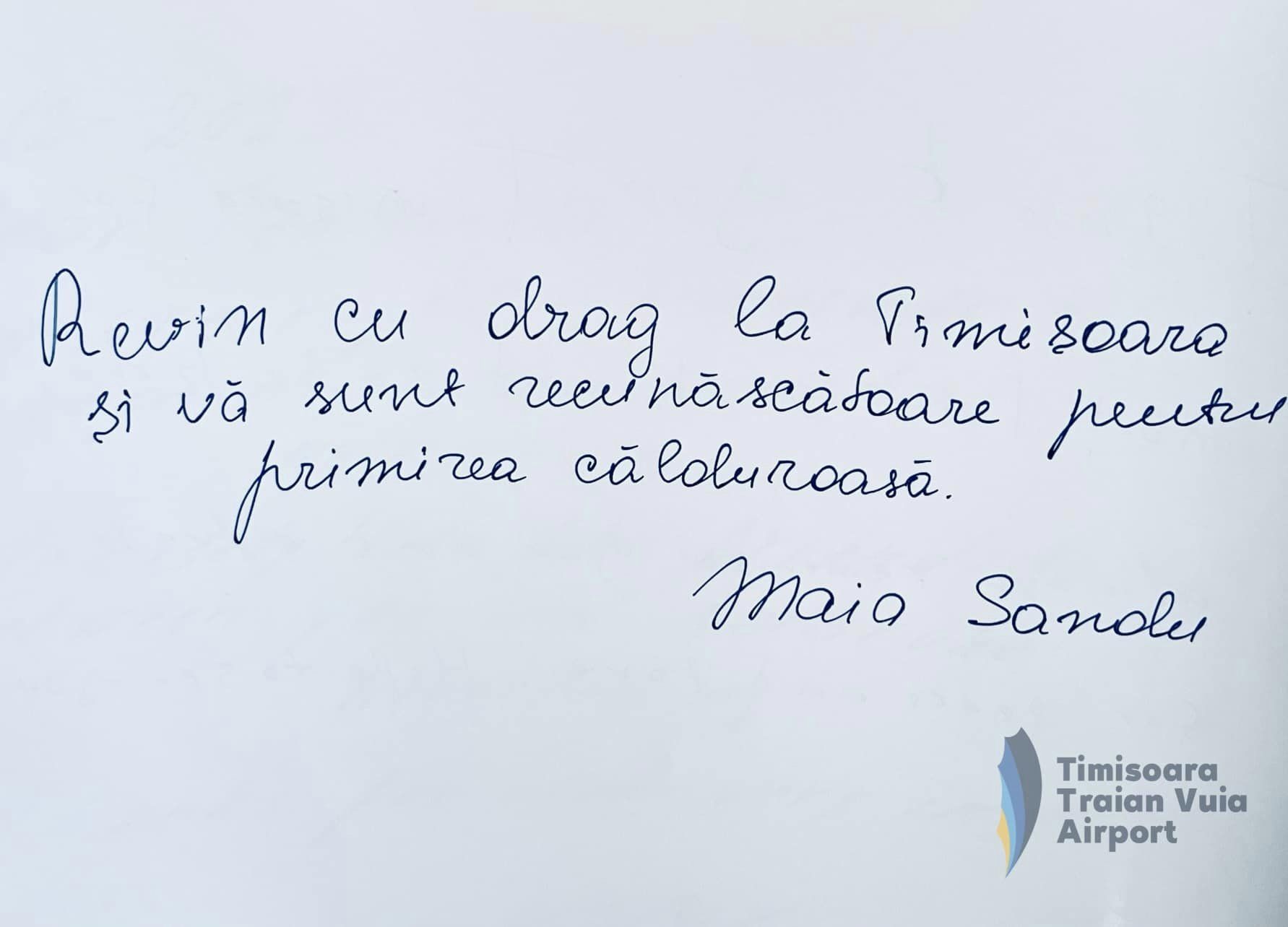 Aterizarea președintei la Timișoara a fost salutată și de reprezentanții Aeroportului Internațional Timișoara, pe rețelele de socializare.